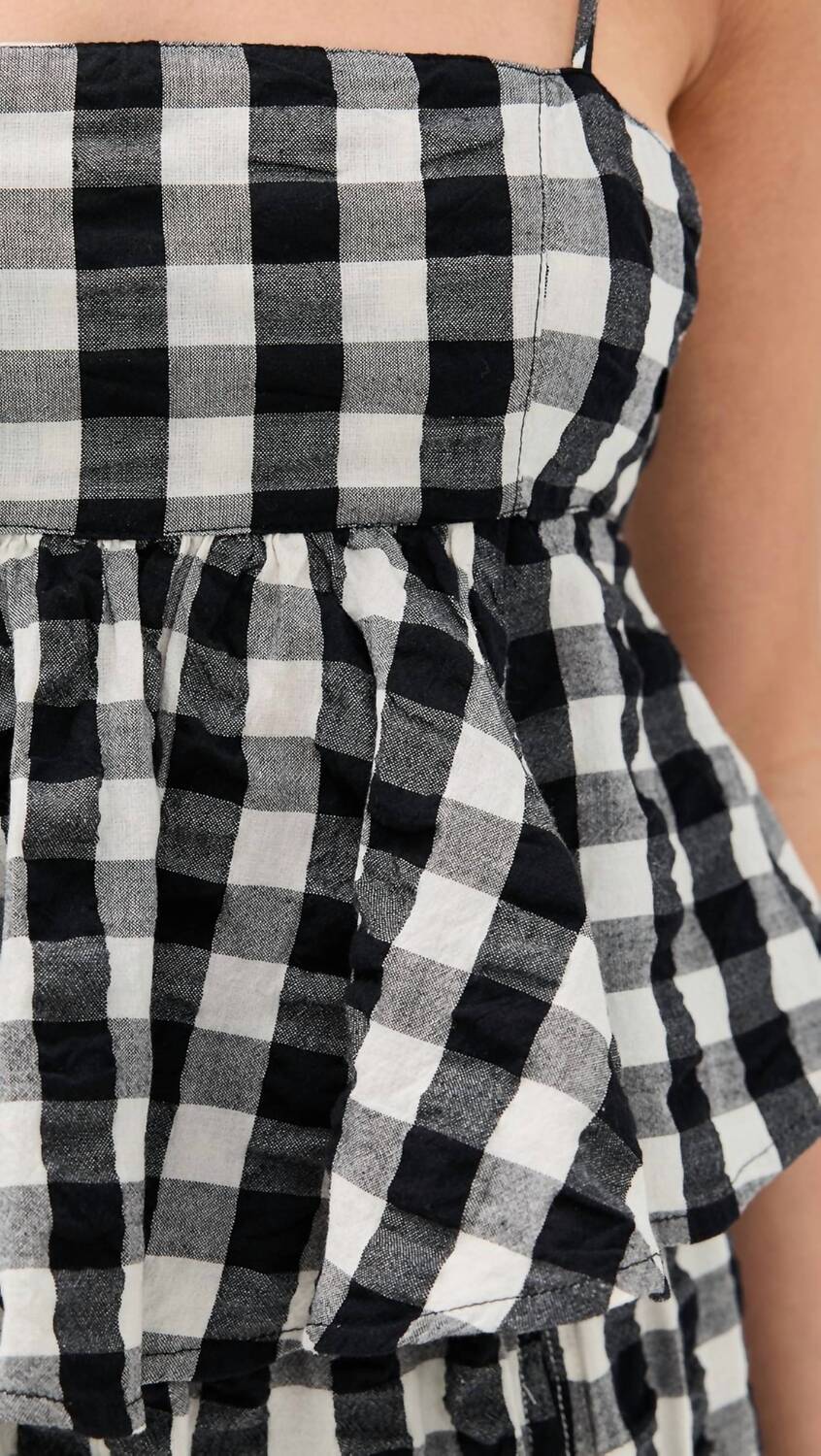 Добавьте изюминку в свой образ для теплой погоды с помощью майки Mia Plaid от Free People, выполненной в игривой комбинированной черной клетчатой ткани. Эта легкая и неэластичная майка из 100% хлопка сшита из сирсакера. Она дополнена тонкими бретельками и объемной плиссированной баской, которая придает образу еще больше элегантности. Квадратный вырез и открытая спина обеспечивают регулируемую посадку с помощью застежки-липучки и частичной резинки на спине. Майка, произведенная в Индии, имеет длину 19 дюймов. Для оптимального ухода рекомендуется стирать в холодной воде.