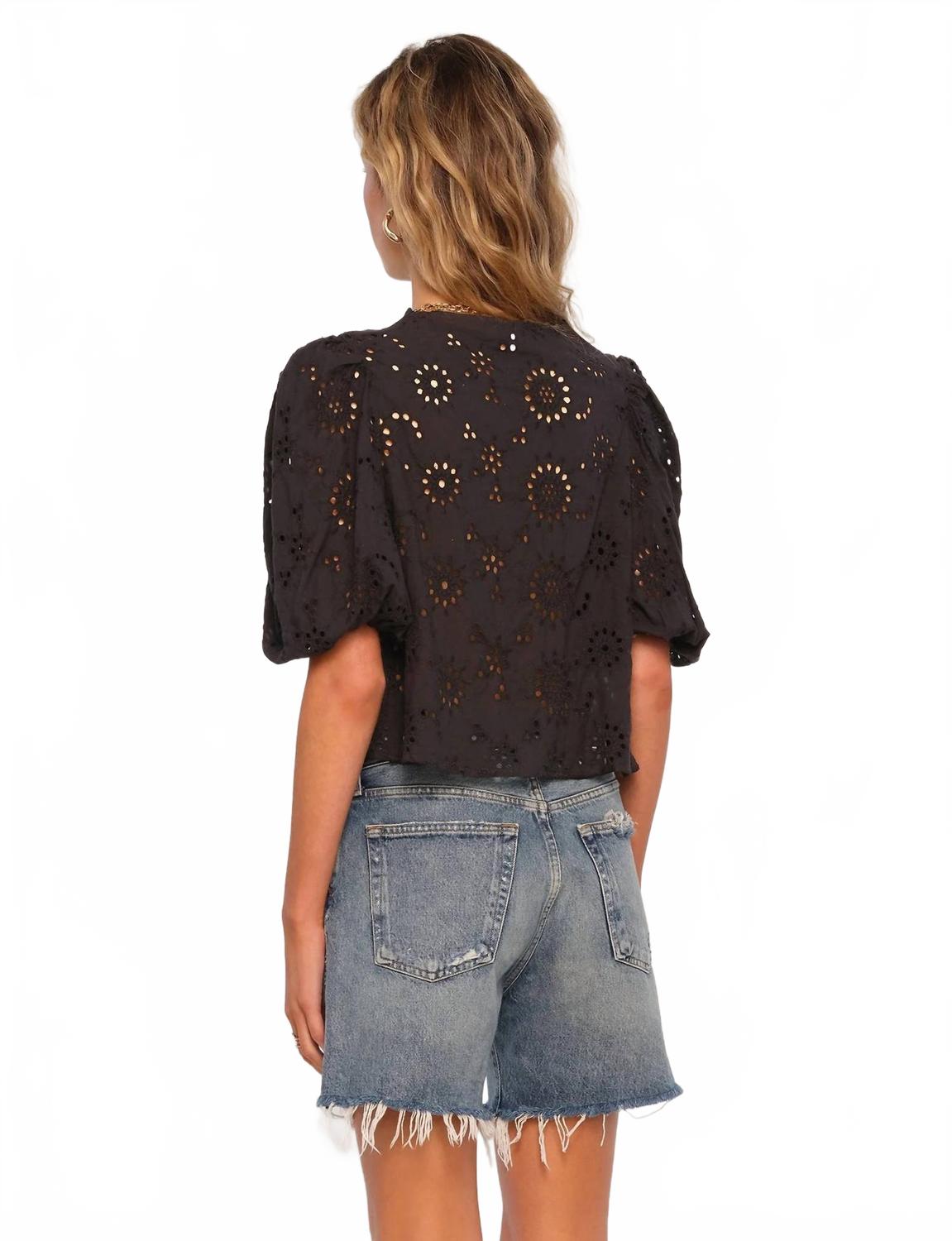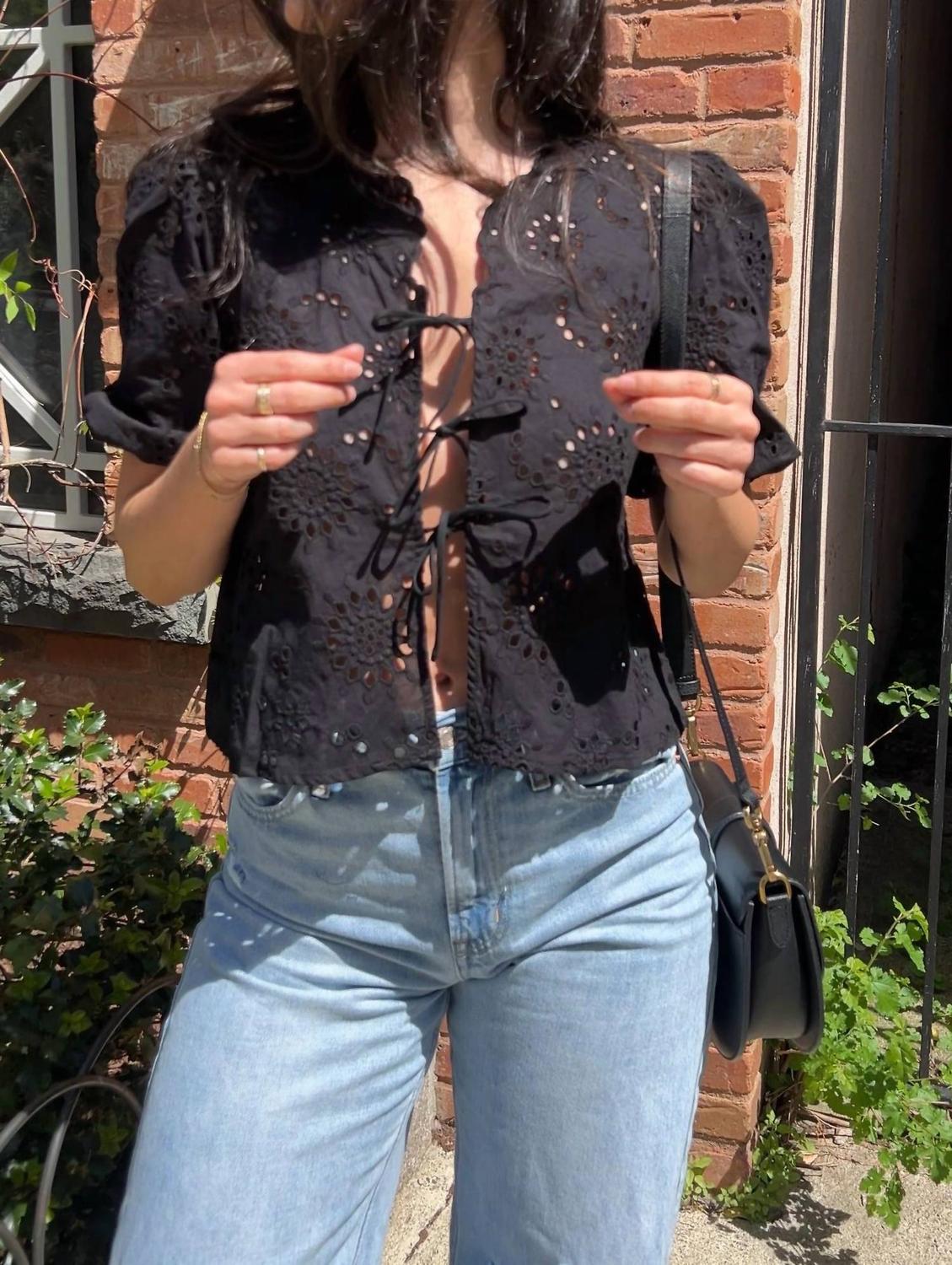 Сочетайте этот укороченный топ с любимыми джинсами с высокой талией или юбкой макси. Откройте для себя топ Heartloom Roxana, воплощение стиля бохо-шик из фактурного черного хлопка. Короткие рукава-фонарики, очаровательный круглый вырез горловины и изящная отделка люверсами сделают его идеальным вариантом для летних ужинов. Изготовленный из 100% хлопка, топ дополнен модной завязкой и элегантной фестончатой отделкой. Для удобства ухода стирайте в стиральной машине согласно инструкции. На модели размер S, и топ идет размер в размер.