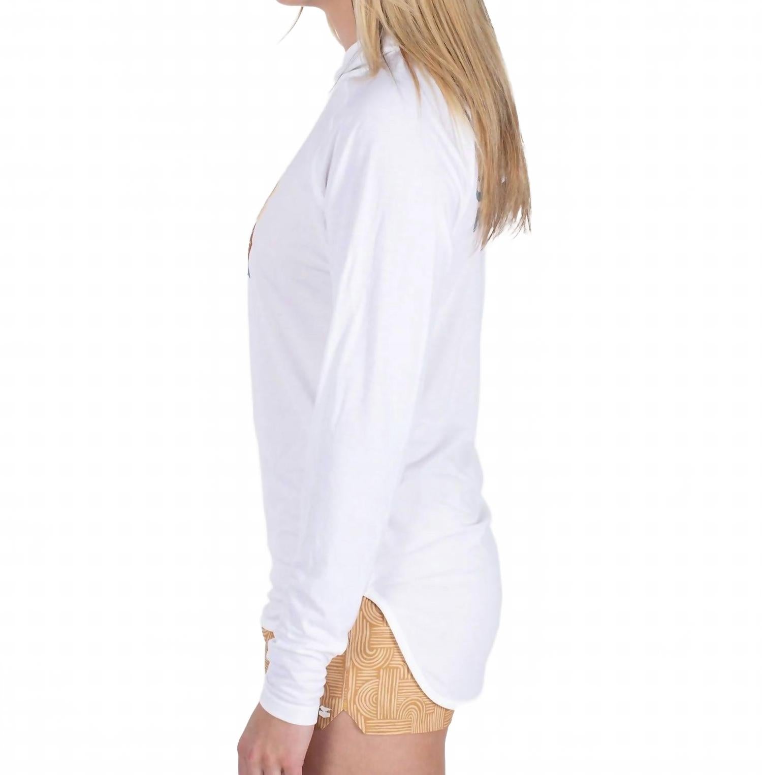 Приятная ткань, безупречный дизайн - встречайте толстовку, которую вам не захочется снимать. Представляем толстовку Jetty Conscience Hooded UV Hoodie Shirt - незаменимый аксессуар для весенних дней и отпуска. Футболка выполнена в белоснежном графическом стиле. Благодаря длинным рукавам, 100% полиэстеру, эта толстовка невероятно мягкая на ощупь и имеет защиту от ультрафиолета 20+, идеально подходит для отдыха на свежем воздухе. С гордостью разработанная и отпечатанная в штаб-квартире Jetty в Нью-Джерси, она имеет укороченный подол с проклеенным краем. Удобная застежка-липучка и машинная стирка помогут сохранить свежесть благодаря рекомендациям по уходу.