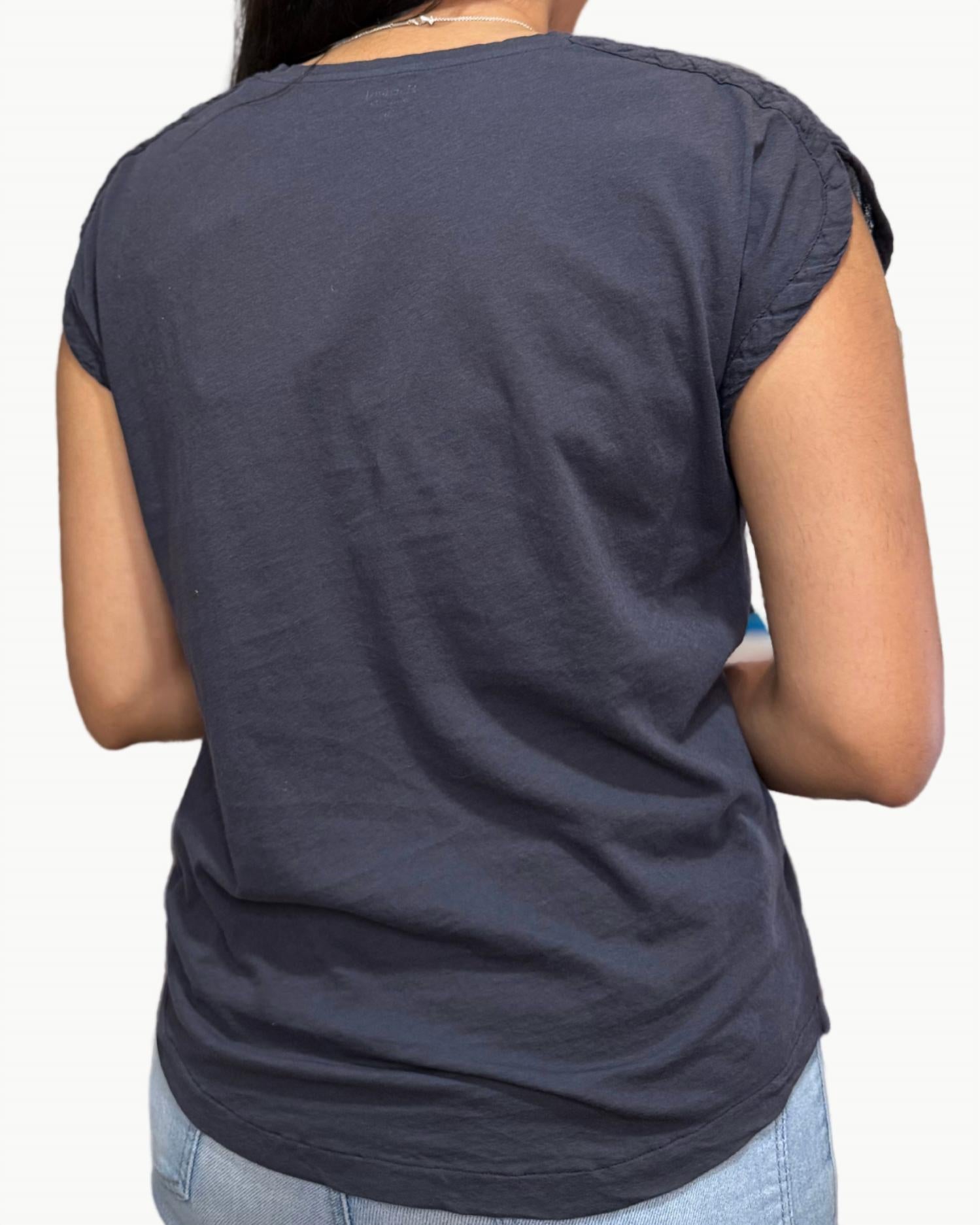 Универсальная блузка, которая подойдет и для работы, и для ужина! Представляем футболку Tomari Knit от Hartford - идеальный выбор для теплых дней благодаря легкому, дышащему хлопковому составу. Эта женская блузка однотонного угольного цвета с короткими рукавами-крылышками, мягкими закругленными швами и привлекательным V-образным вырезом. Застежка на липучке обеспечивает непринужденную посадку, идеально подходящую для минималистичных весенних мероприятий, таких как званые ужины. Рост модели - 160 см, размер 0, что гарантирует идеальную посадку.