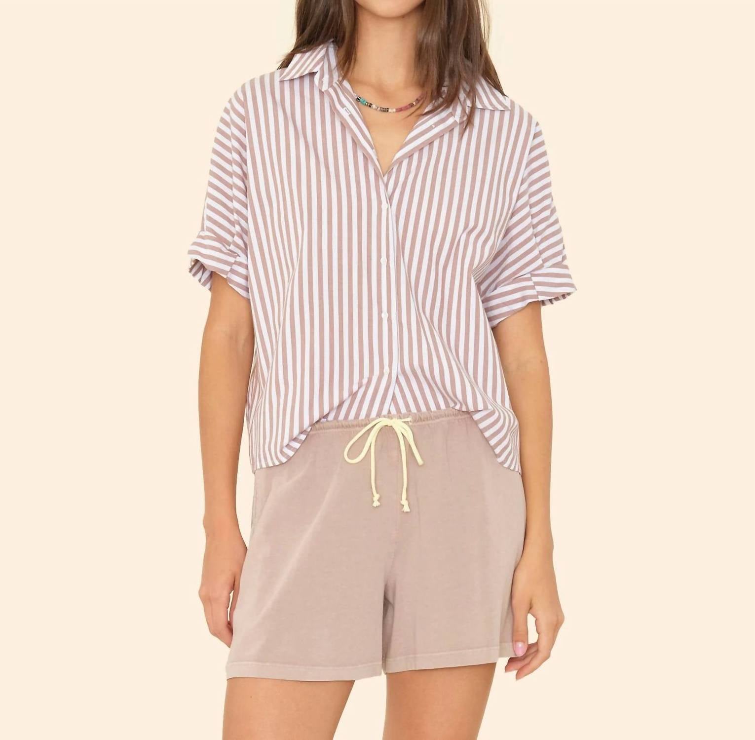 Эта рубашка на пуговицах удобная и в то же время элегантная. Встречайте рубашку Teddy Shirt от XIRENA - шикарный выбор для вашей весенней коллекции в полоску Cafe. Рубашка свободного кроя с короткими рукавами и подвернутым узором, а также с модной кокеткой сзади, которая излучает минималистичное очарование. Эта укороченная рубашка на пуговицах спереди выполнена из плотного хлопка, а застежка на пуговицы добавляет ей классический штрих. Идеально подходит для званого ужина и станет незаменимой вещью в гардеробе любого стильного человека.