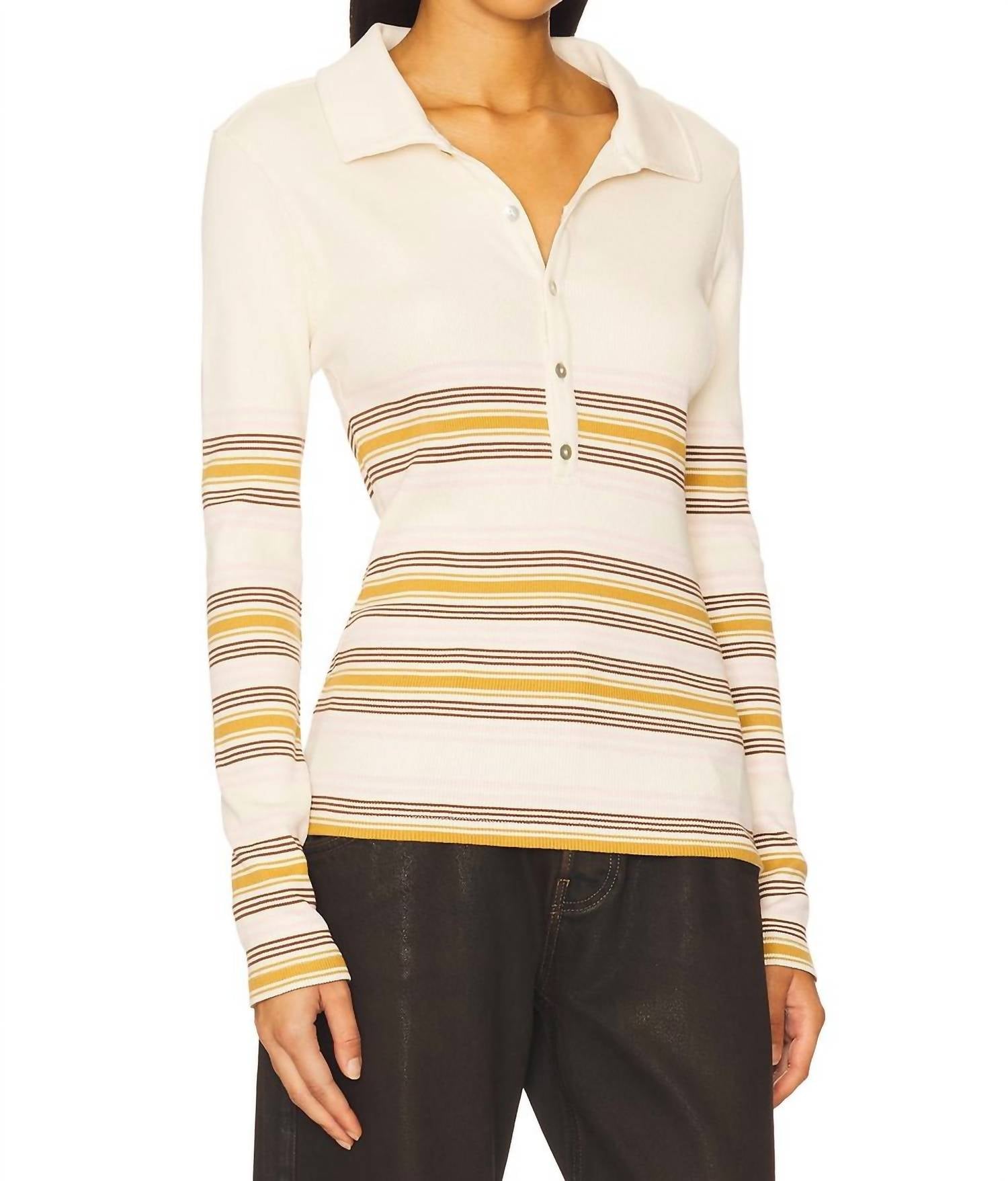 Футболка Desiree - это идеальное сочетание комфорта и непринужденного стиля. Изготовленная из 100% хлопка и трикотажа средней плотности в рубчик, эта футболка дополнена частичной застежкой на перламутровые пуговицы спереди, которая добавляет ей изысканности. Она идеально подходит для повседневной носки, сочетая мягкость, текстуру и вневременную привлекательность в одной универсальной вещи.