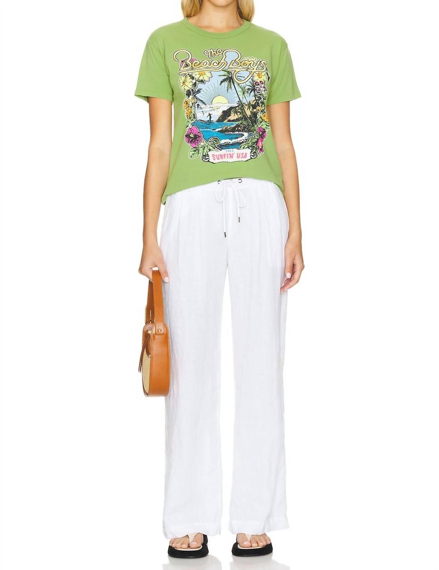 Эта футболка с короткими рукавами, изготовленная из 100% хлопка, приятна на ощупь и имеет винтажный, потертый вид. Круглый вырез и классический вырез горловины рингер воплощают непринужденный стиль концертной футболки. Размеры футболки: ширина груди 45 см, длина 60 см. Эта женская футболка, разработанная в Лос-Анджелесе, подходит для машинной стирки и сушки в сушильной машине для легкого ухода.