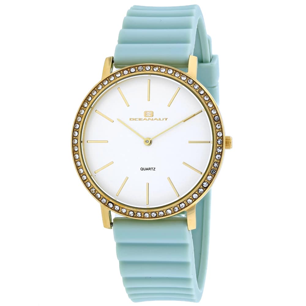 Корпус из нержавеющей стали, каучуковый ремешок, белый циферблат, кварцевый механизм, минеральный материал, устойчивый к царапинам, водонепроницаемость до 3 атм (30 метров)