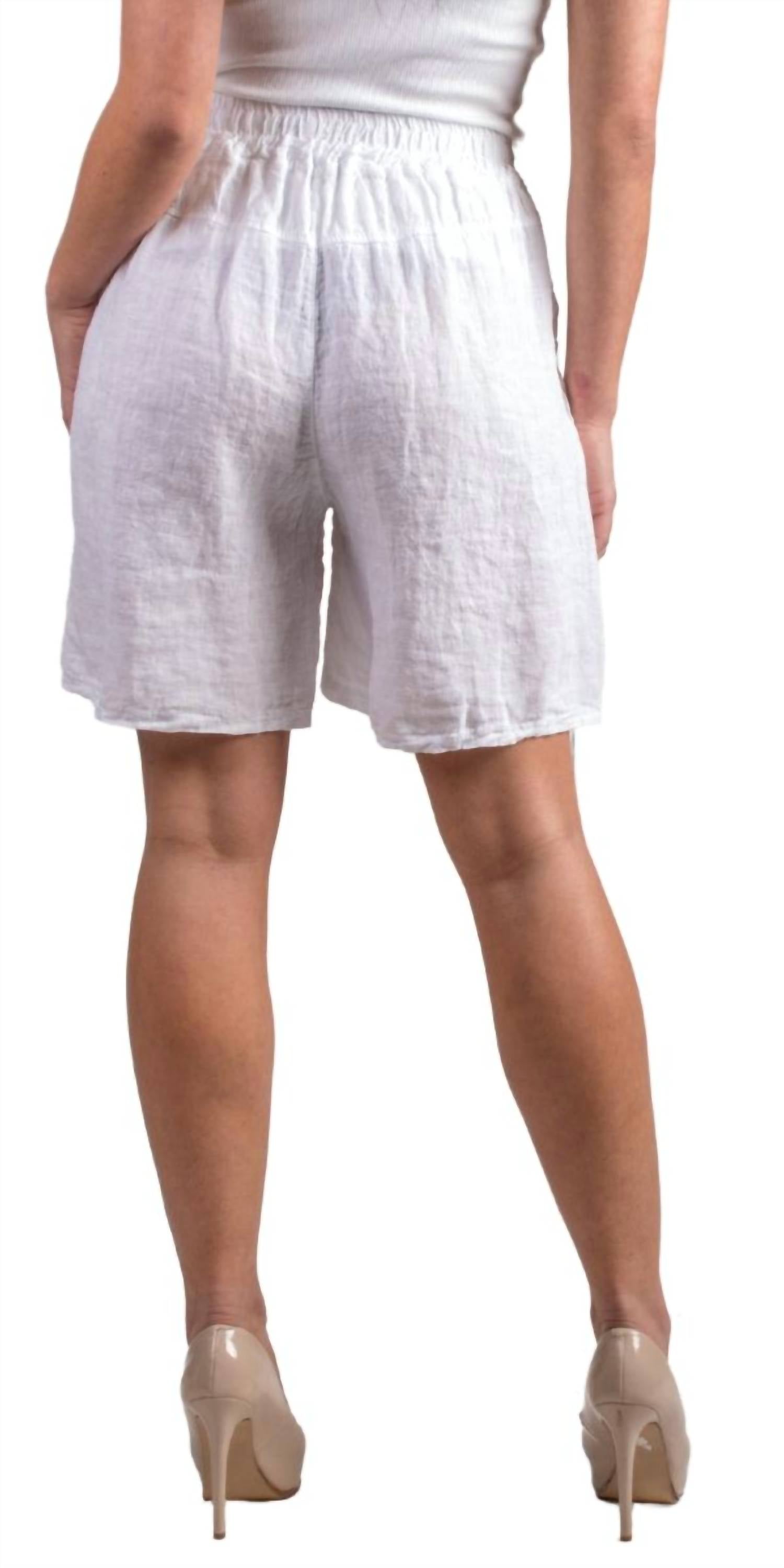 Эти шорты с высокой талией сидят идеально, и нам они тоже понравятся. Насладитесь непринужденным летним стилем с льняными шортами Silvana от GIGI MODA, созданными для стильного образа, который идеально подходит для путешествий. Эти белые шорты с высокой талией имеют эластичный пояс с удобной завязкой и два боковых кармана, обеспечивая комфорт и функциональность. Сделанные в Италии из 100% льна, они имеют однотонный крой, который идеально сочетается с любым летним нарядом. Эти шорты легко стирать вручную и сушить на веревке. Они созданы, чтобы вы чувствовали себя комфортно и стильно во время ваших приключений. Рост модели 175 см, размер единый.