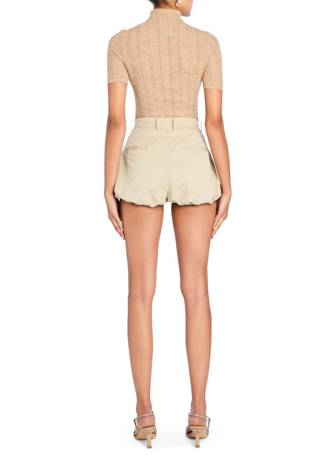 Эти шорты с высокой талией идеально сидят по фигуре. Нам они очень нравятся, и вам тоже. Встречайте шорты Jo Shorts от SER.O.YA - изысканное дополнение к вашему гардеробу для теплой погоды. Доступны в универсальном песочном цвете. Эти шорты с высокой талией, изготовленные из смеси хлопка (98% хлопка и 2% спандекса), отличаются характерным силуэтом в форме пузыря и практичной застежкой на крючок. Сделанные в Китае, они гармонично сочетают в себе современный дизайн и комфорт, что делает их идеальными как для многослойного образа, так и для самостоятельного образа. Рост модели - 178 см, размер S.