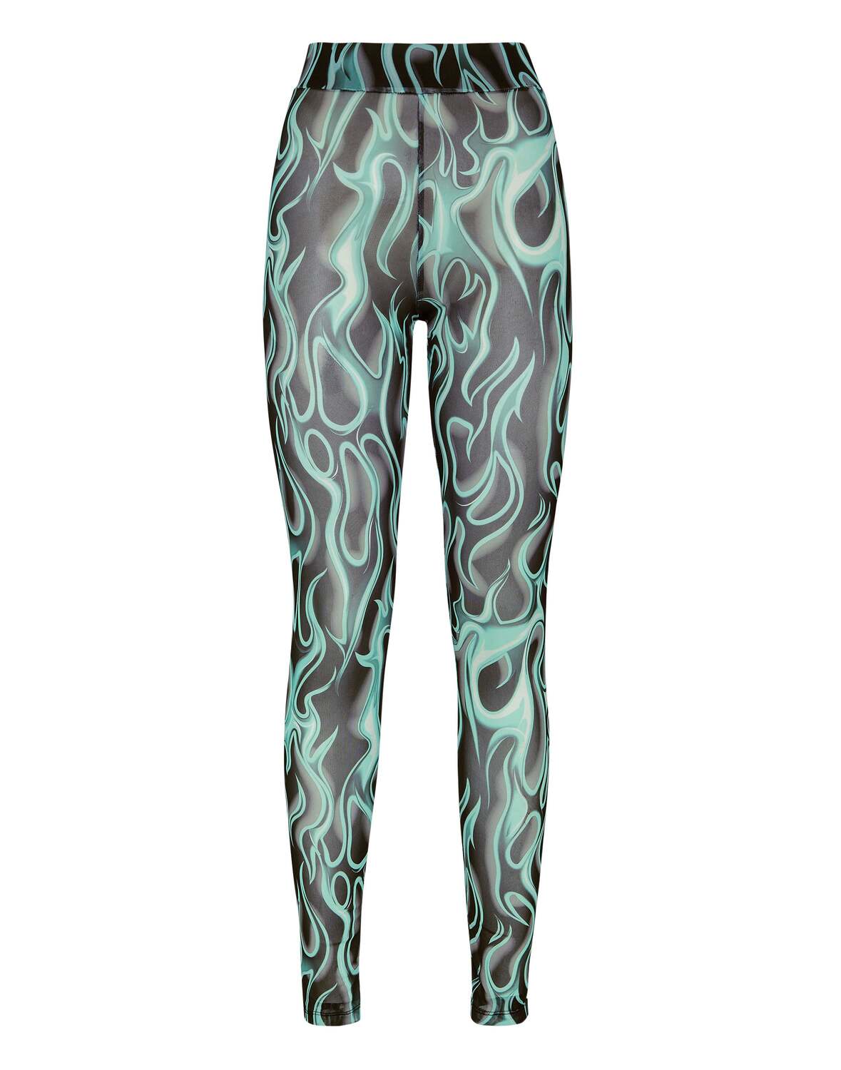 Подчеркните свою чувственность с помощью леггинсов из эластичного тюля с принтом в виде пламени по всей поверхности.