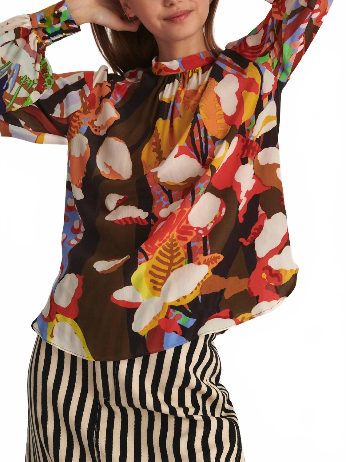 Сочетайте ее с любимыми джинсами и шлепанцами для следующего девичника. Представляем блузку «Медичи» из коллекции Mii - максималистское изделие, воплощающее безмятежную красоту осеннего пейзажа. Изготовленная из 100% шелка, эта блузка с длинными рукавами и круглым вырезом идеально подходит для весеннего ужина. Застежка-липучка обеспечивает легкость и элегантность, а замысловатый цветочный узор отдает дань уважения творчеству дизайнера Беренжер Энен. Для сохранения внешнего вида блузку рекомендуется стирать вручную в холодной воде, избегать любых видов отбеливания, сушить на горизонтальной поверхности и гладить при низкой температуре; не сушить в стиральной машине.