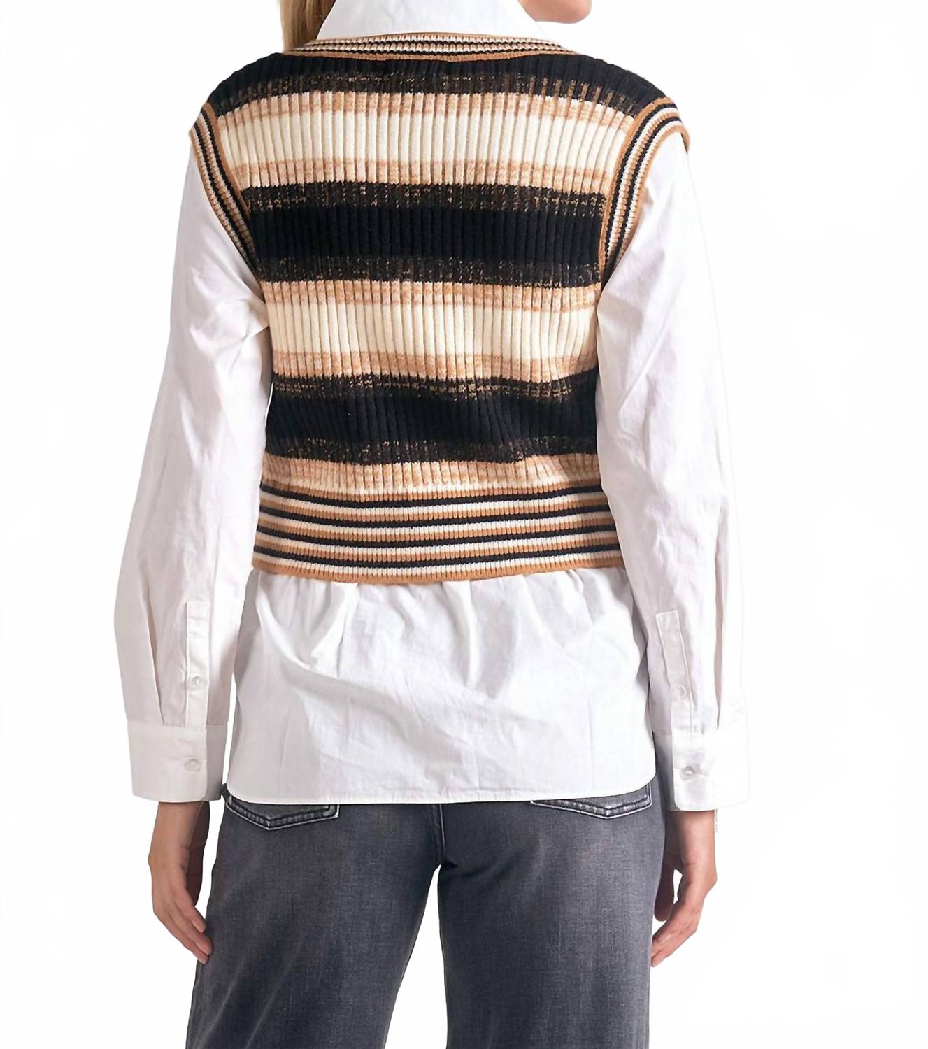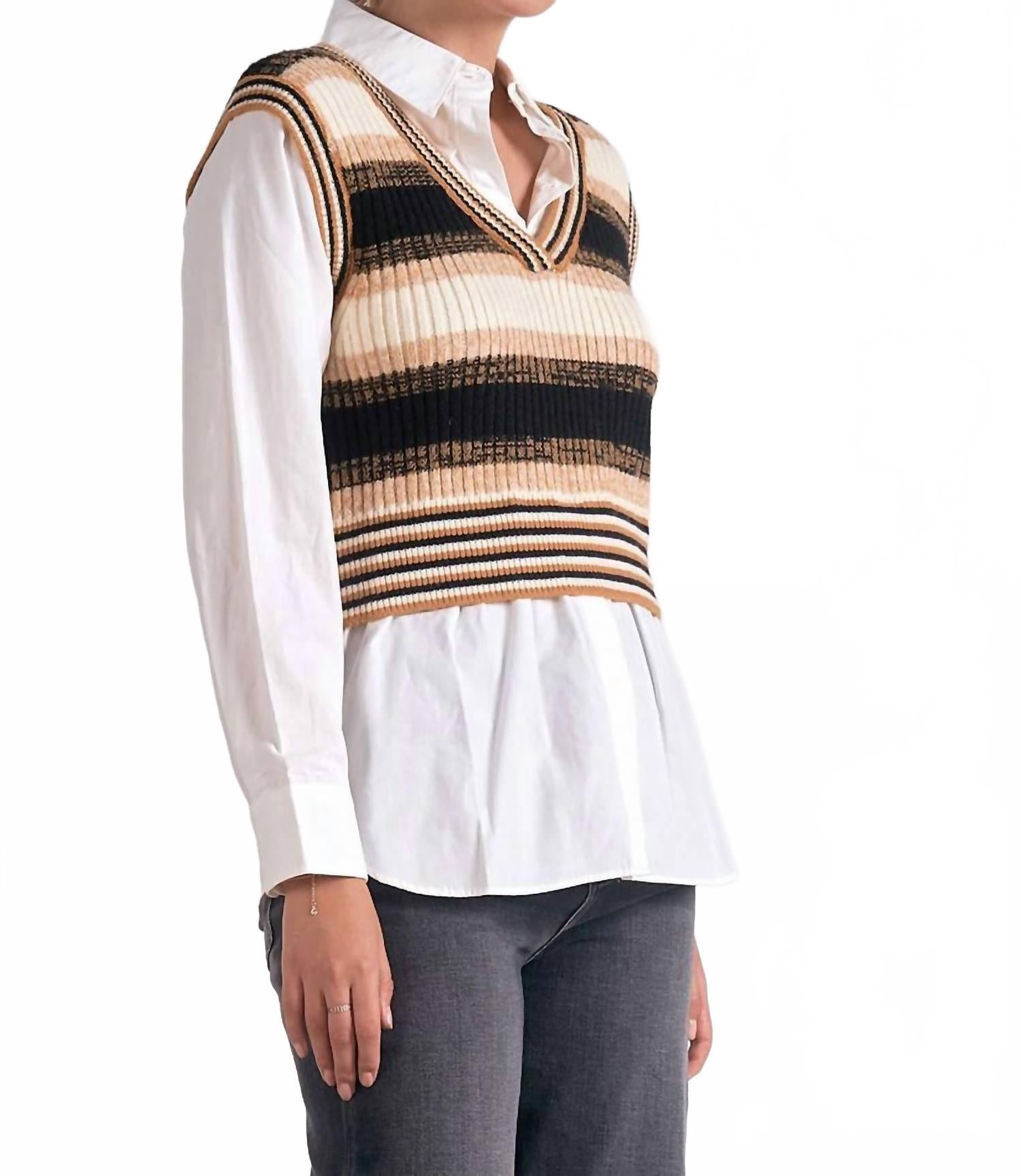 Блузка-свитер с жилетом бежевого цвета Elan, Beige Multi