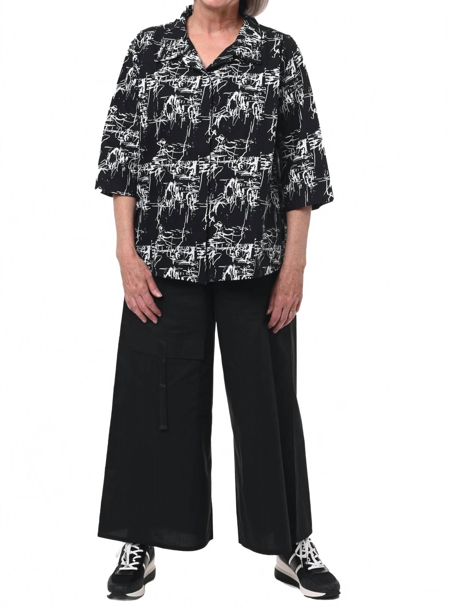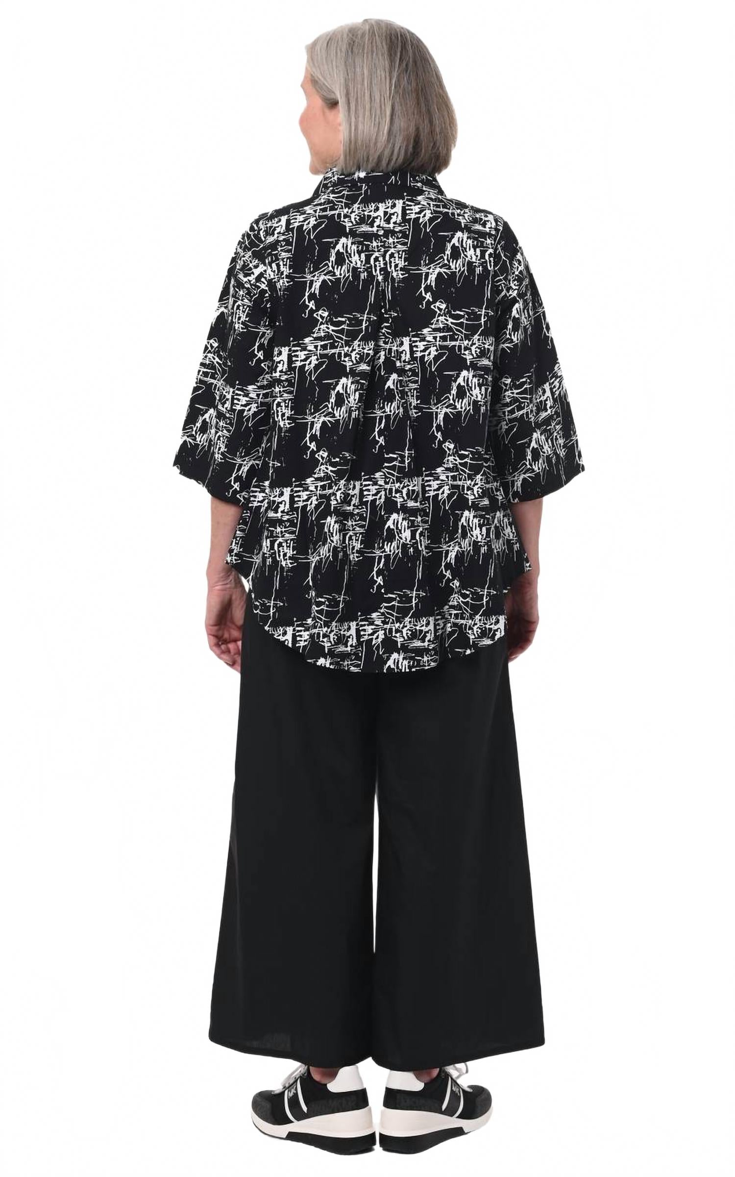 Блузка Alice от Tulip Clothing - очаровательное дополнение к вашему весеннему гардеробу. Блузка выполнена в эффектном черном цвете с гравировкой. Благодаря рукавам три четверти и А-образному силуэту, эта блузка красиво драпируется, обеспечивая комфорт и стиль. Классический воротник и удобная застежка на пуговицы дополнены встречной складкой для дополнительного комфорта. Выполненная в минималистичном стиле, она проста в уходе: стирается в стиральной машине и сушится на веревке. Доступна в размерах XS-XXL, обхват груди от 46 до 53,5 дюймов, а также в различных вариантах длины для универсальной посадки.