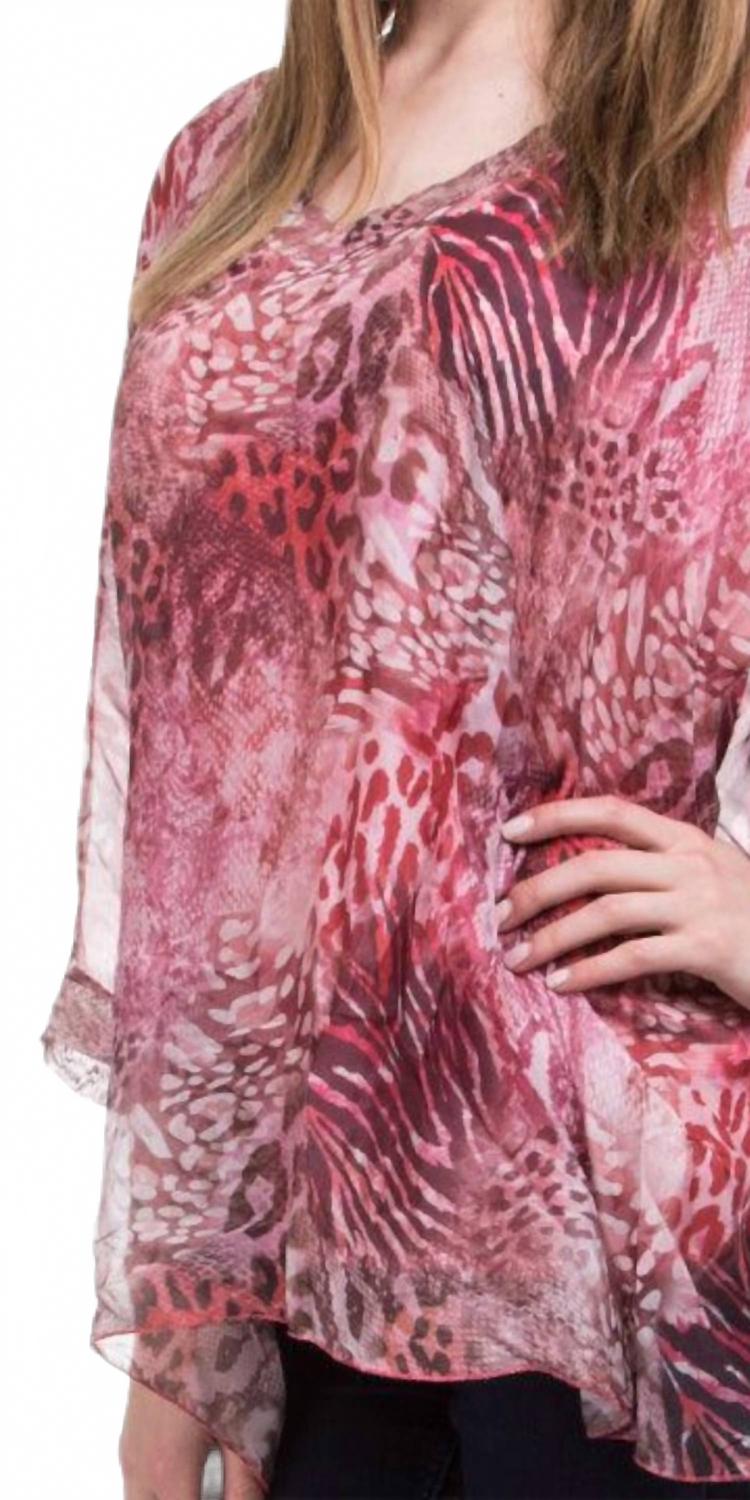 Универсальная блузка, которая подойдет как для работы, так и для ужина! Откройте для себя роскошную блузку-кафтан Seta Vee Bea от GIGI MODA - эффектное дополнение к любому гардеробу в ярко-красном цвете. Эта блузка с длинными рукавами выполнена из 100% шелка и имеет приятную подкладку из 95% вискозы и 5% эластана, что обеспечивает роскошное ощущение комфорта. Изделие, изготовленное в Италии, украшено принтом с изображением диких животных по всей поверхности и отличается комфортным овальным вырезом и застежкой-липучкой. Уход за этой изысканной блузкой - только химчистка.