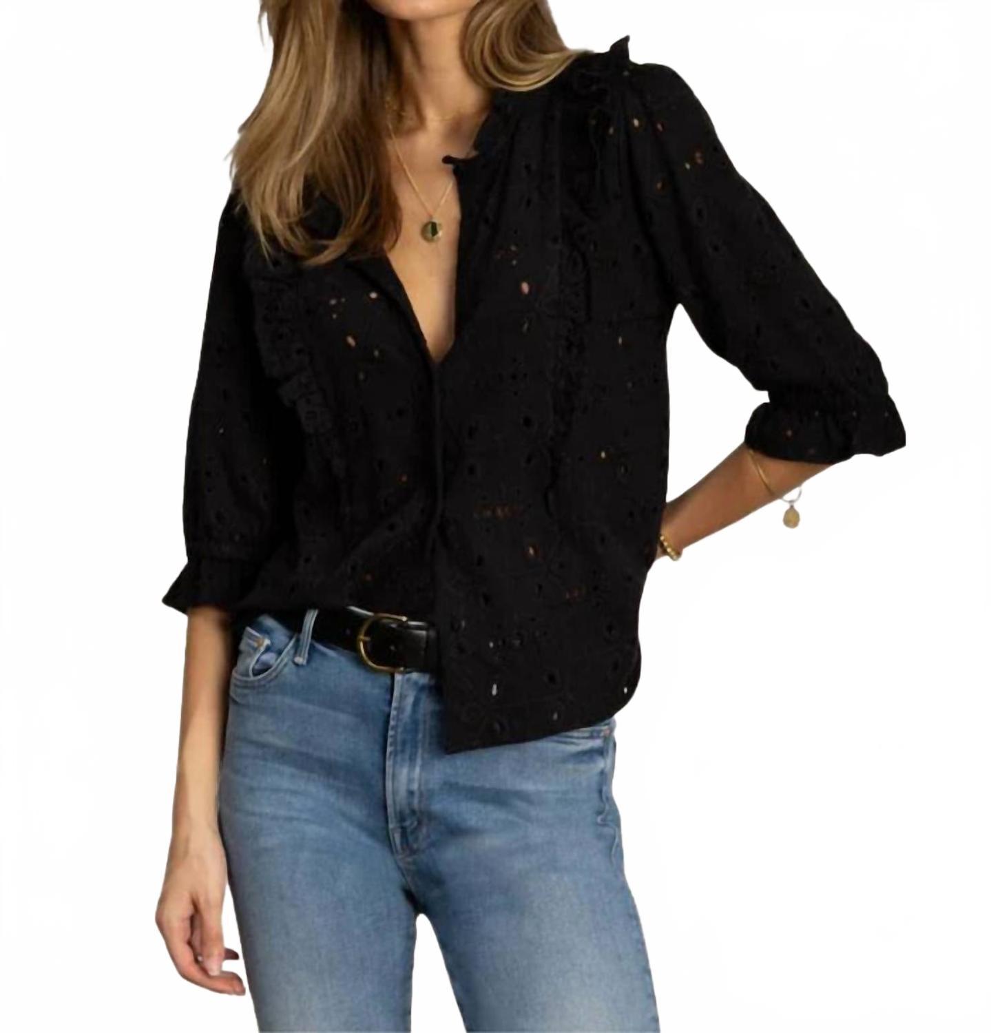 Универсальная блузка, которая подойдет как для работы, так и для ужина! Дополните свой гардероб для теплой погоды блузкой Delaney от Dylan с рукавами три четверти и воротником-стойкой, которые идеально сочетают в себе стиль и комфорт. Эта блузка из мягкого хлопка с современной фактурой люверсов в шикарном черном цвете идеально подходит как для повседневных, так и для нарядных случаев. Добавьте нотку минималистской изысканности благодаря застежке на пуговицы спереди и пуговицам-ракушкам. Уход: машинная стирка и сушка в стиральной машине для легкого ухода.