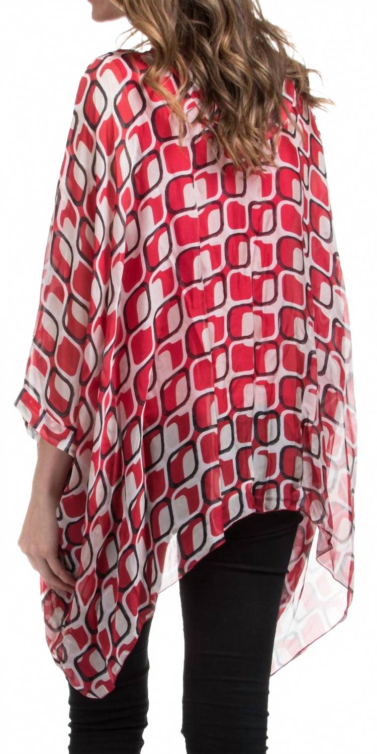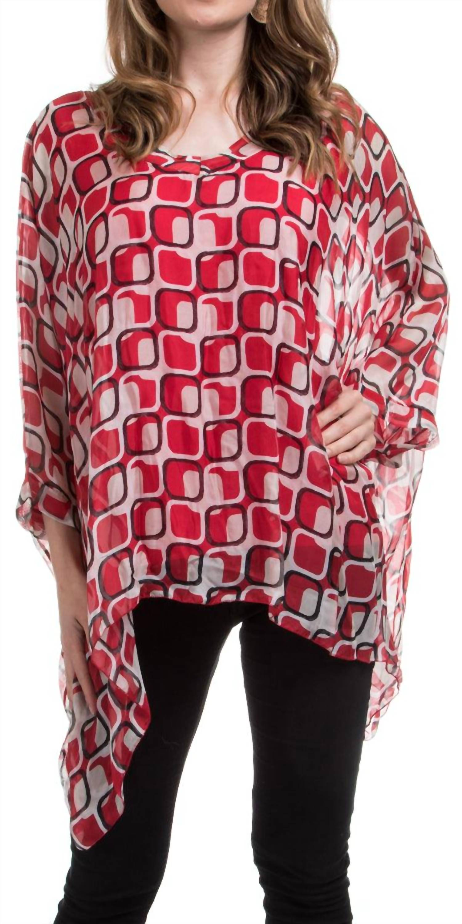 Блузка, которая никогда не выйдет из моды, вне времени. Ощутите винтажную элегантность в блузке-кафтане Seta Vee Gia от GIGI MODA с длинными рукавами и потрясающим геометрическим рисунком в виде плитки. Блузка из 100% шелка с подкладкой из 95% вискозы и 5% эластана обеспечивает роскошный комфорт. Изготовленная в Италии, она имеет шикарный округлый вырез и удобную застежку-липучку. Этот красный кафтан идеально подходит для летних случаев. Рекомендуется сдавать в химчистку, чтобы он всегда оставался частью вашего гардероба.