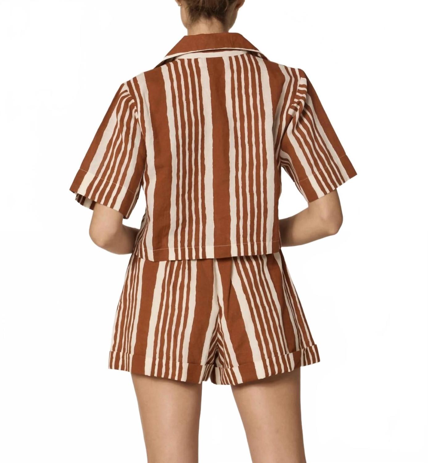 Обнажите немного тела в этом милом и непринужденном укороченном топе. Блузка Mizuki, изготовленная вручную в Индии из изысканного хлопкового льна, сочетает в себе комфорт и стиль. Она отлично сочетается с бюстгальтером и отличается классическим полосатым дизайном, идеально подходит для создания непринужденного, но элегантного образа на каждый день. Сочетайте ее с шортами Niko Shorts для создания комплекта или с плавками Cleobella для создания непринужденно элегантного ансамбля.