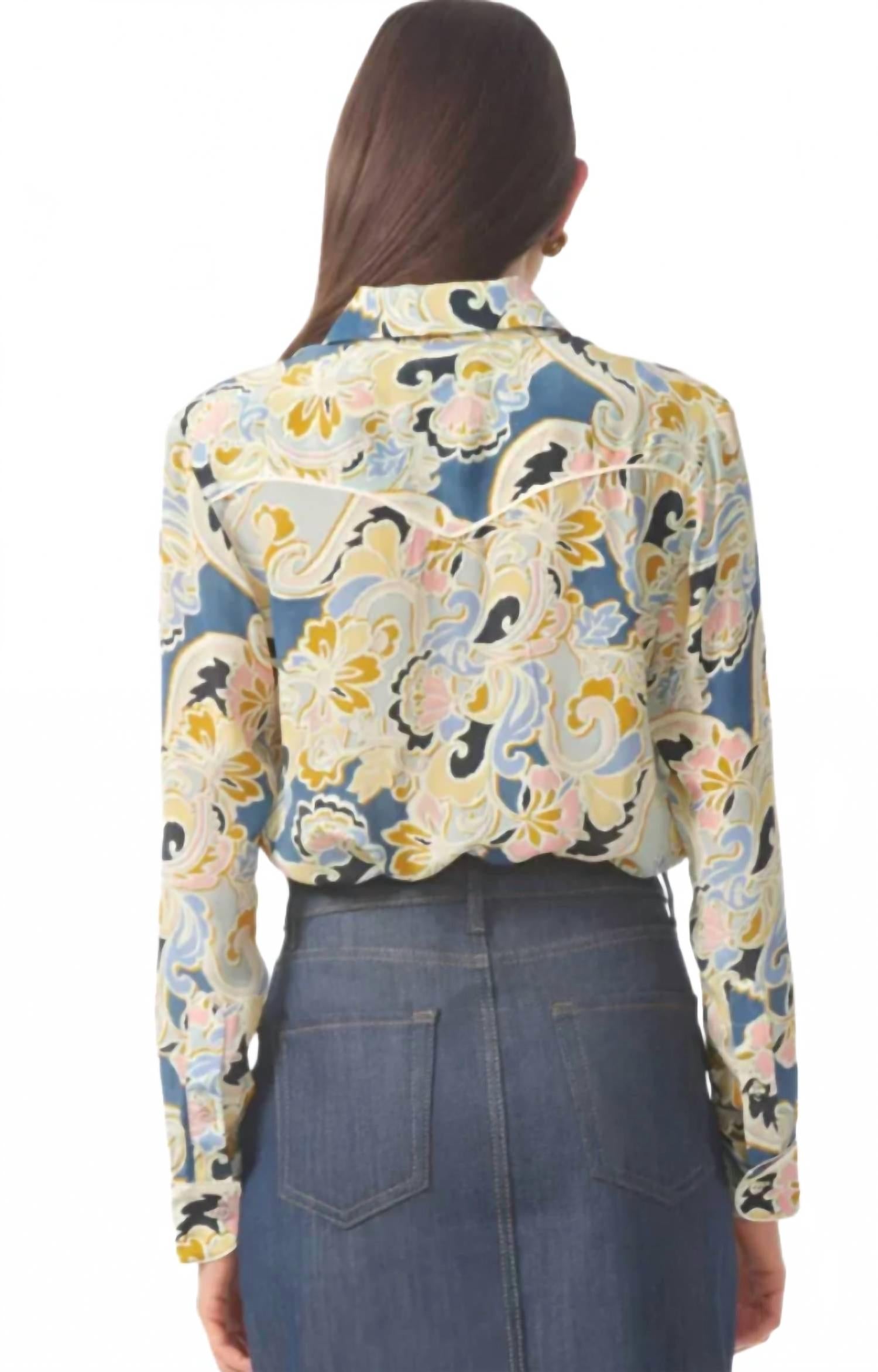 Универсальная блузка, которая подойдет как для работы, так и для ужина! Веселый цветочный принт идеально сочетается с вашими любимыми джинсами или белым низом. 100% вискоза. Только сухая чистка.