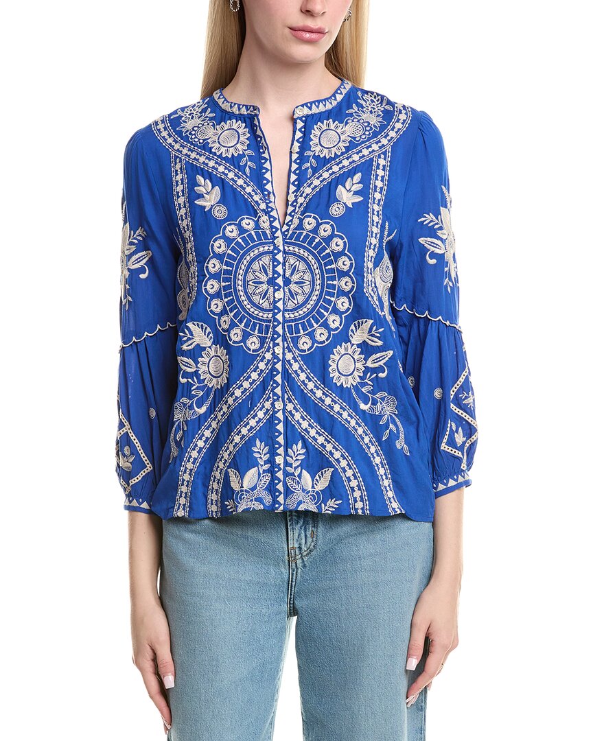 Украсьте свой гардероб блузкой Johnny Was Brynlee, которая станет великолепным дополнением к вашей коллекции. Эта блузка в стиле бохо насыщенного кобальтового оттенка выполнена из 100% модала, создавая роскошный образ. Округлый вырез и рукава 3/4 добавляют изысканности, а застежка на пуговицы спереди добавит нотку современности. Эта блузка идеально подходит как для повседневных, так и для деловых случаев. Длина блузки от плеча до подола составляет около 65 см. Доступны различные размеры. Эта блузка импортного производства, стирается только вручную, воплощает в себе эклектичный винтажный стиль, которым славится Johnny Was. Добавьте эту блузку Brynlee в свой гардероб и откройте для себя свой внутренний мир бохо-шика.
