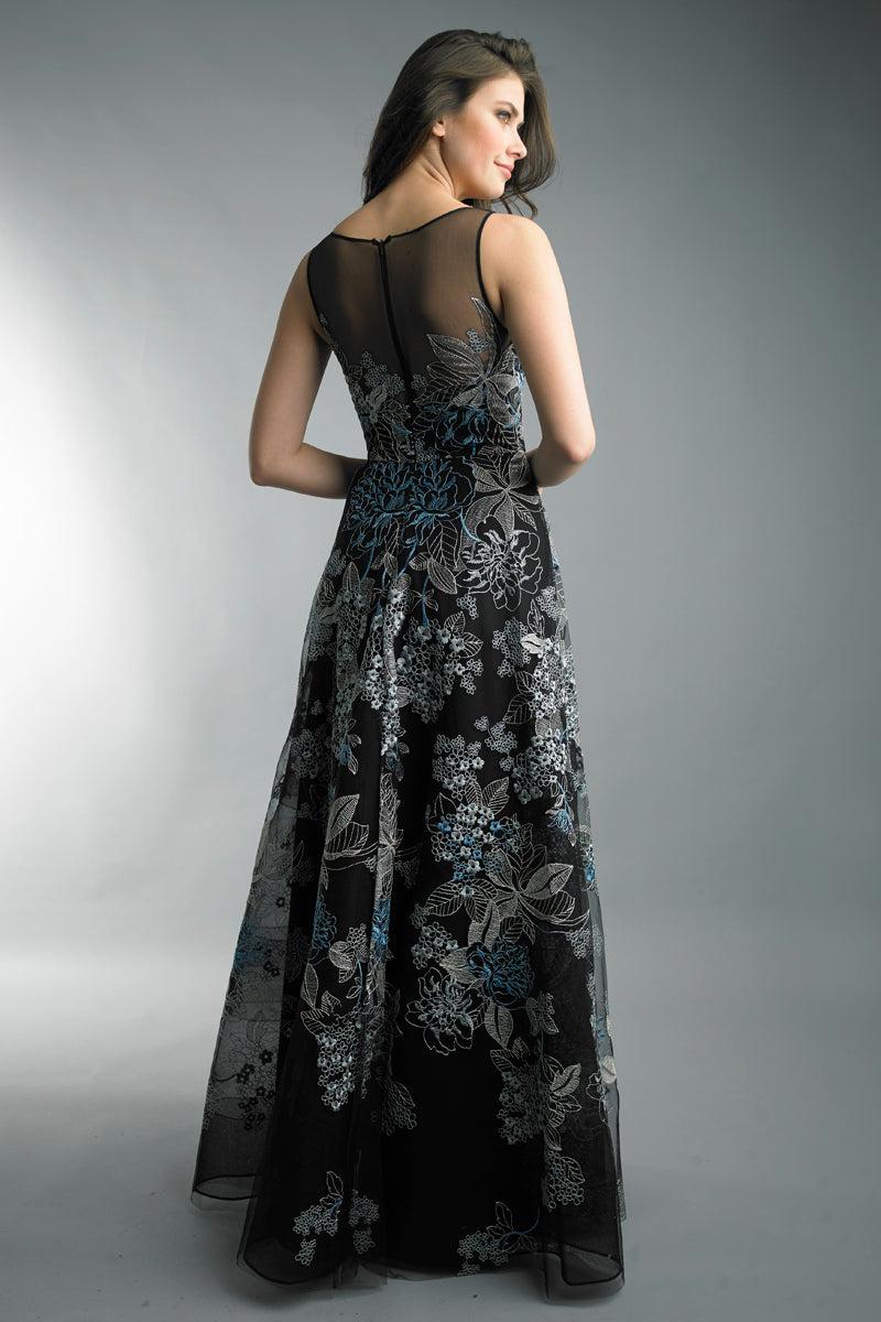 Бальное платье с цветочным мотивом от Basix с прозрачными плечами и цветочной вышивкой по всему изделию.