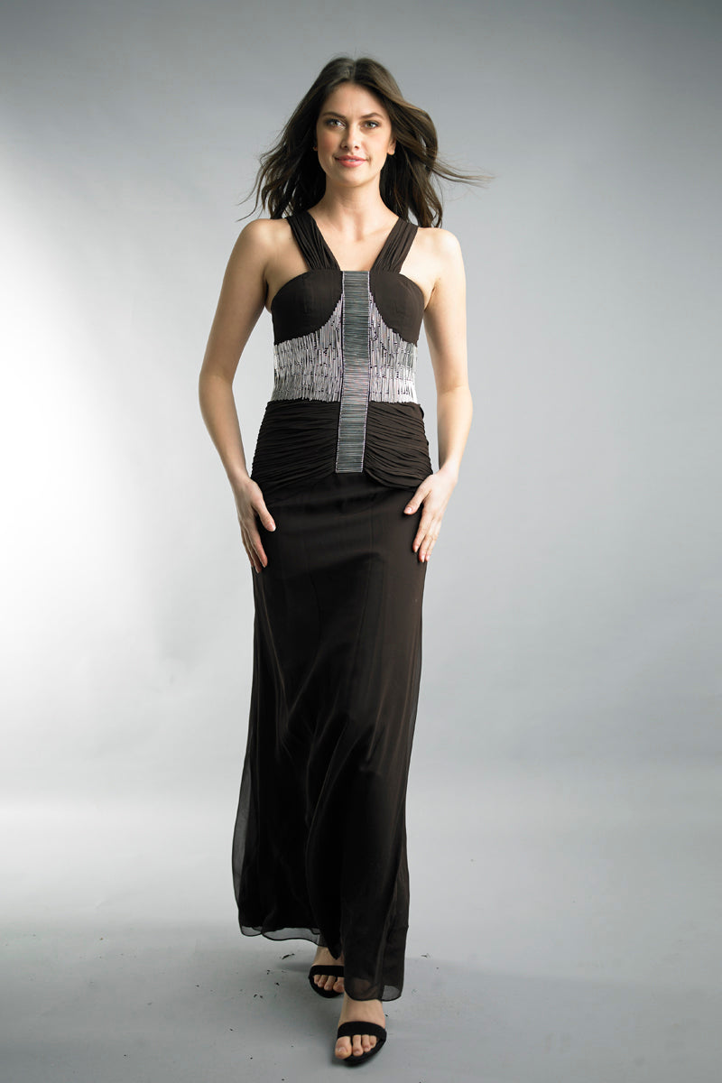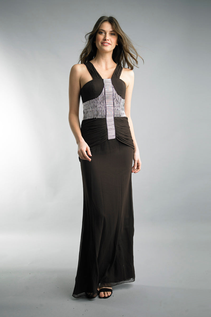 Вечернее платье с отделкой из стекляруса Basix Black Label, коричневый