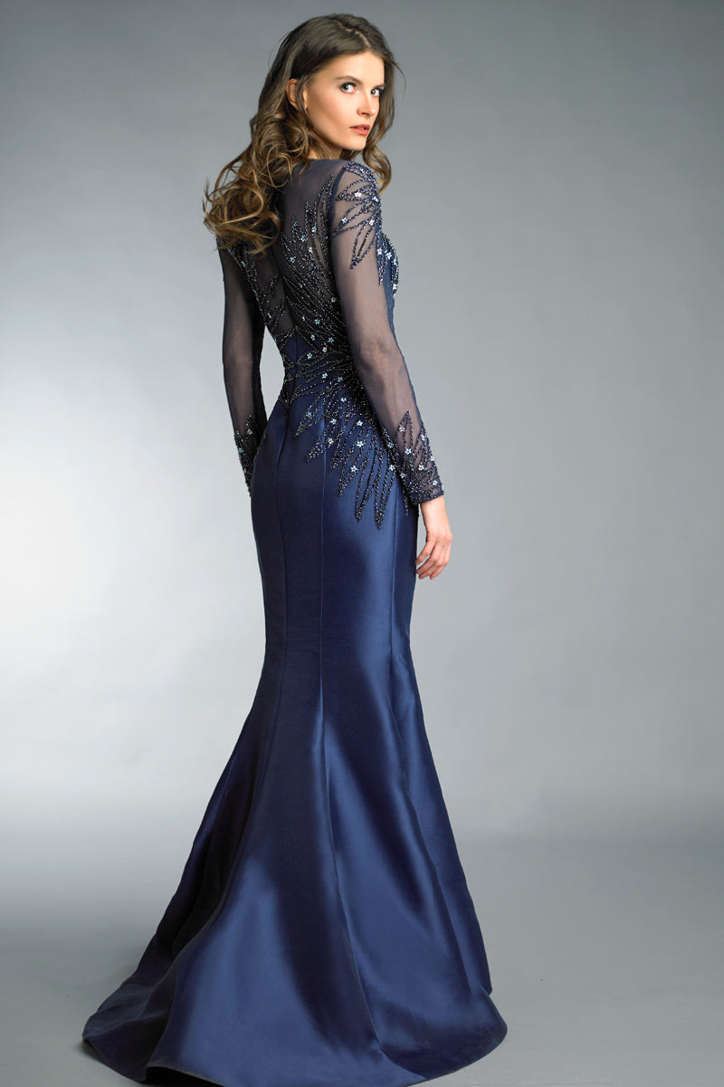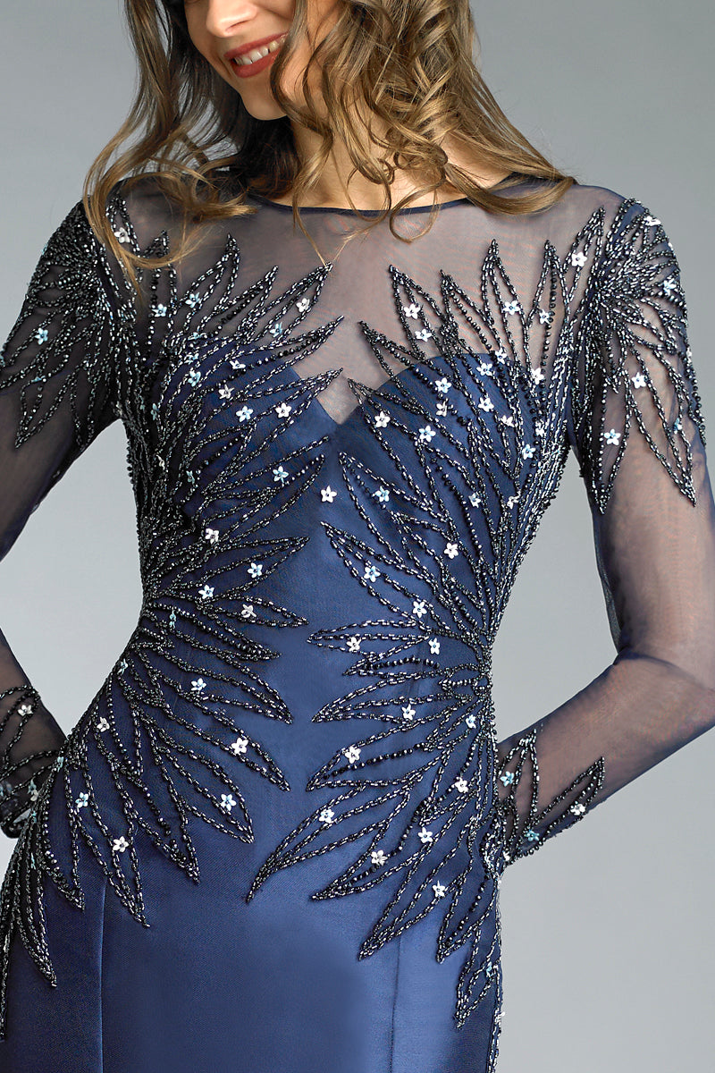 Платье-иллюзия с длинными рукавами, расшитое бисером