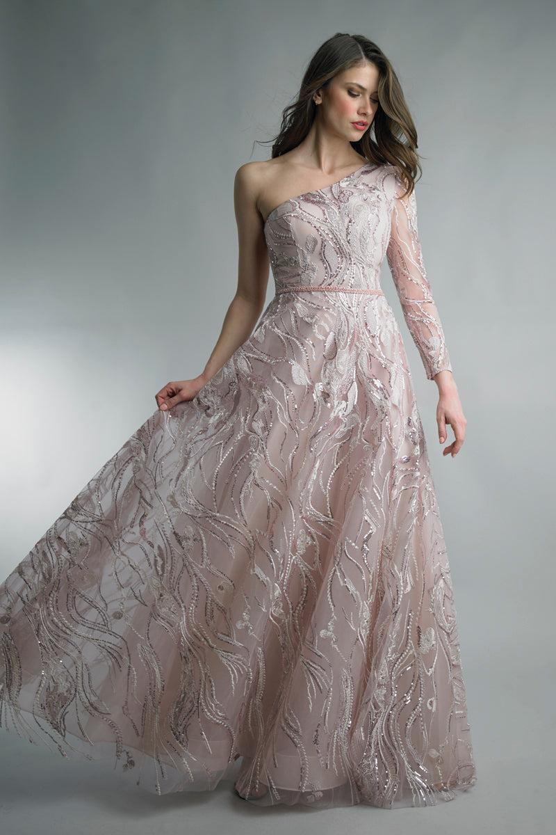 Вечернее платье с блестками и 1 рукавом