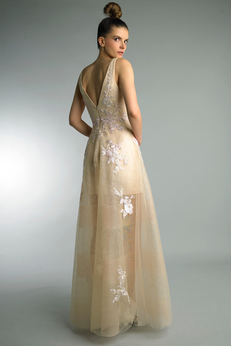 Вечернее платье без рукавов с вышивкой Basix Black Label, Champagne