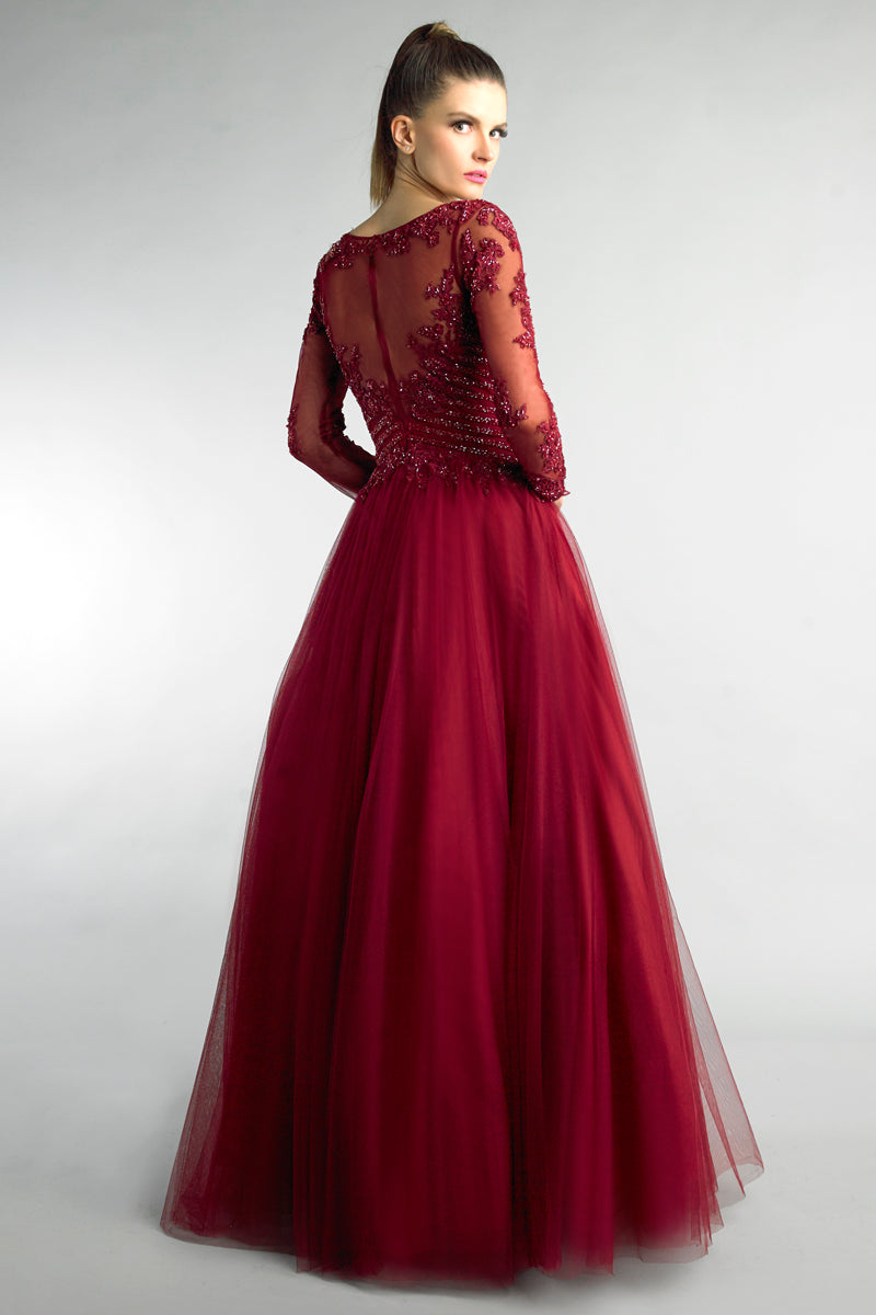 Вечернее платье с длинными рукавами Basix Black Label, бургундия