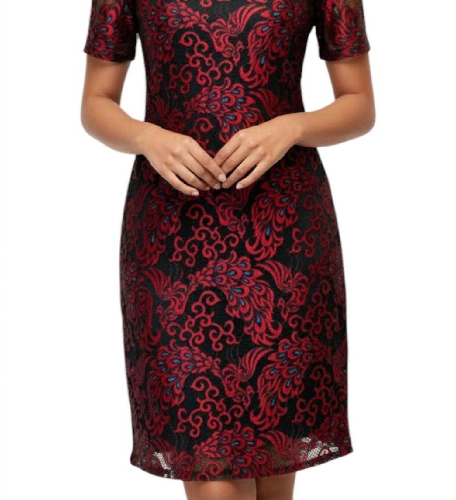 Короткое и воздушное платье для теплых дней. Откройте для себя мини-платье Michelle Lace от Michael K - воплощение элегантности и современной изысканности в эффектном красно-черном фактурном узоре. Это женское платье с короткими рукавами и застежкой-липучкой выполнено из изысканного кружева, подчеркивающего облегающий силуэт. Круглый вырез идеально подходит для коктейльных вечеринок или пасхальных праздников: он создает элегантный образ, а мягкая дышащая подкладка обеспечивает комфорт. Уход: только химчистка. Оцените это классическое платье, идеально подходящее для тех, кто стремится к элегантности и уверенности в себе.