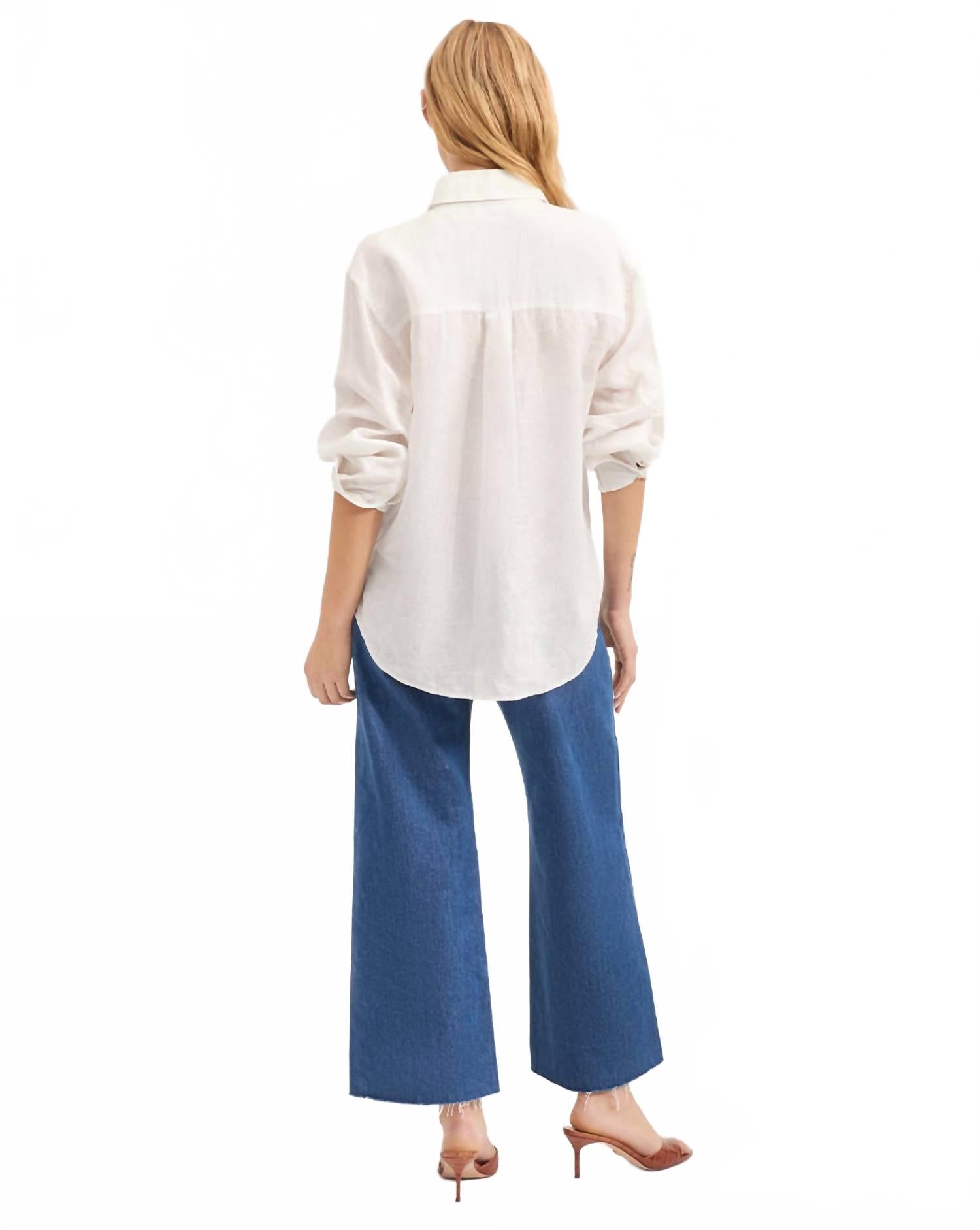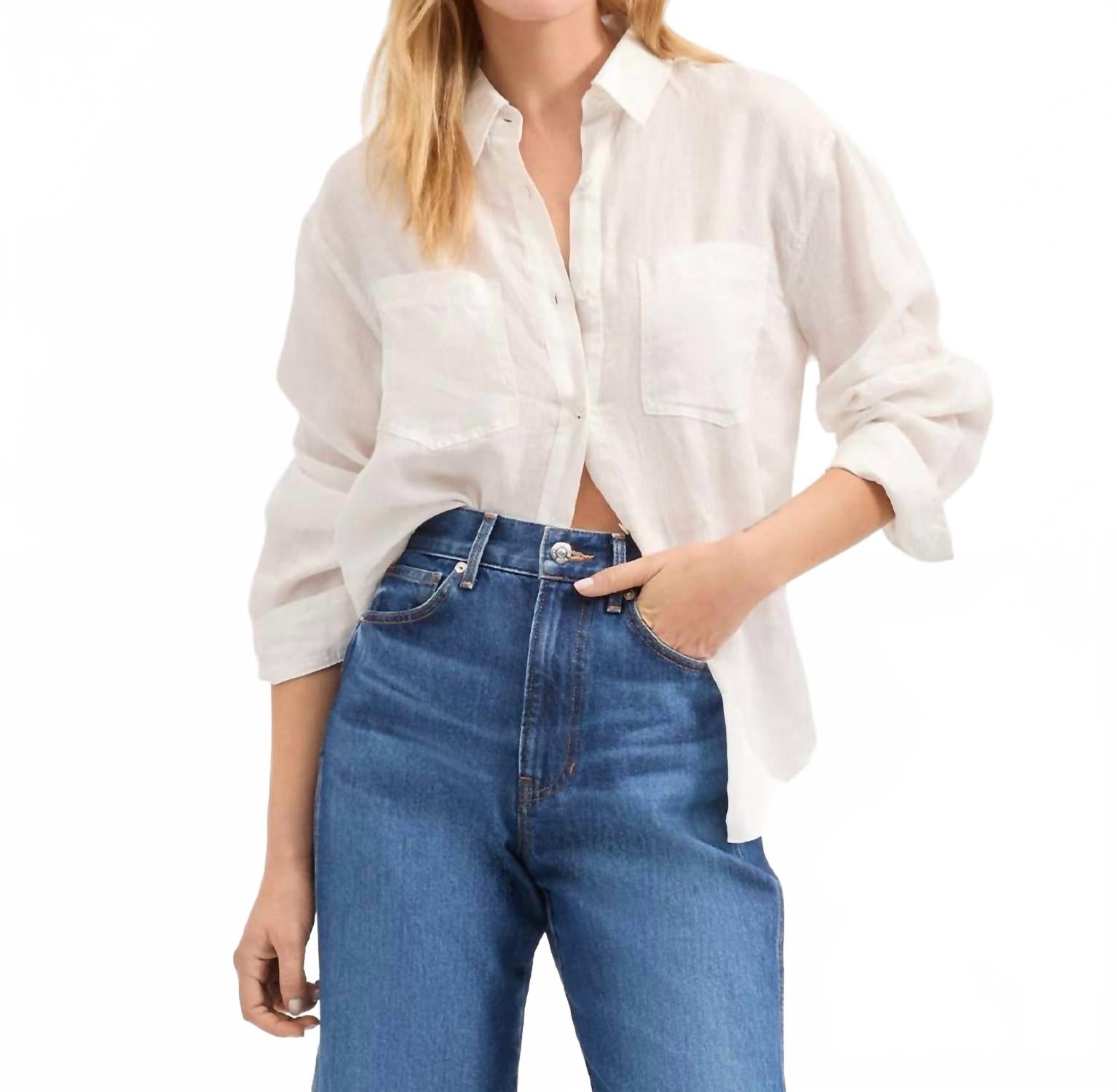 Классическая рубашка на пуговицах, которая никогда не выйдет из моды. Встречайте льняную рубашку Gil от Вероники Бирд - бежевую рубашку на пуговицах, идеально подходящую для создания непринужденного и элегантного образа. Эта искусно сшитая модель изготовлена ​​из 100% льна с длинными рукавами с отворотами и длиной 73 см. Однотонный крой, классический воротник-стойка и удобная застежка на пуговицы. Эта универсальная рубашка, созданная для женщин и идеально подходящая для весенней рабочей одежды, подлежит химчистке.