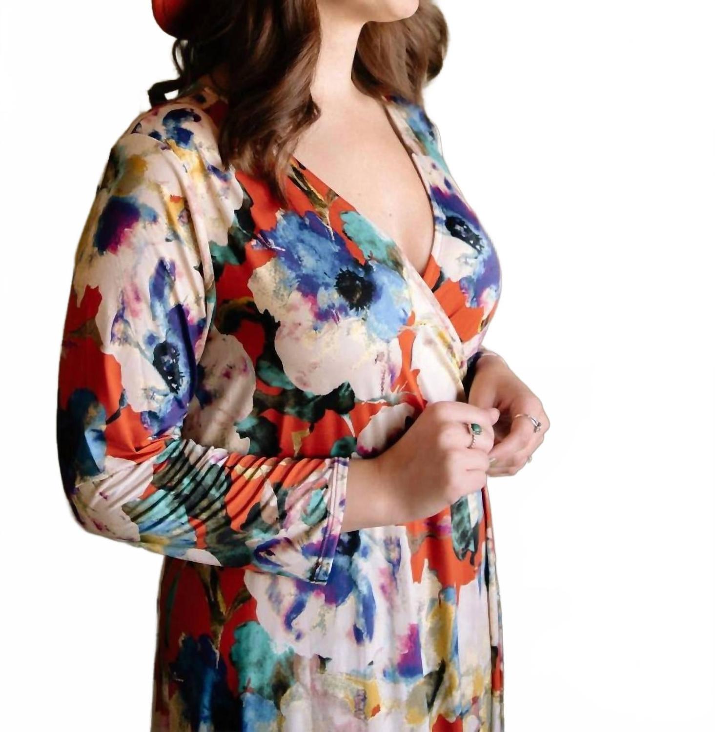 Это милое и удобное платье с длинными рукавами - воплощение всех его прелестей. Представляем платье-миди Iris Faux Wrap от Emerald Collection - изысканное дополнение к гардеробу plus-size. Это платье с длинными рукавами украшено ярким разноцветным цветочным принтом и идеально подходит для создания яркого образа. Платье имеет облегающий силуэт с запахом и V-образным вырезом, завязывается на завязку, обеспечивая одновременно стиль и комфорт. Это платье, созданное для путешествий и мероприятий в стиле бохо-шик, идеально подходит для лета и воплощает непринужденную элегантность. Уход: ручная стирка.