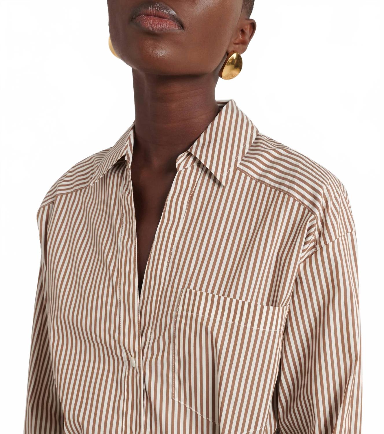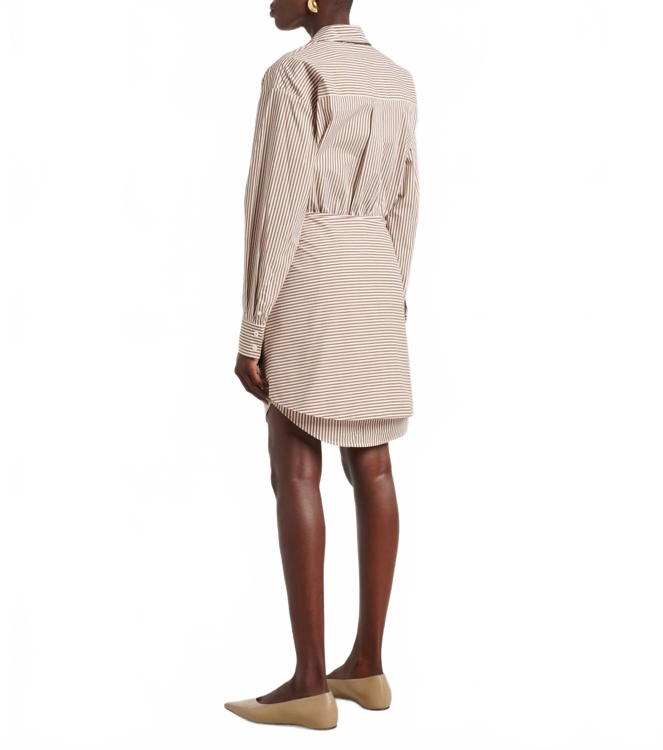 Идеальное мини-платье для теплых месяцев. Встречайте платье-рубашку Roanoke от Veronica Beard - шикарное дополнение к вашему летнему гардеробу в полоску насыщенного охрово-белого цвета. Это платье-рубашка с длинными рукавами, манжетами на пуговицах и заостренным воротником, дополненное V-образным вырезом и функциональным нагрудным карманом. Это мини-платье из смеси хлопка, нейлона, полиамида и эластана обеспечивает комфортную посадку. Длина платья - примерно 86 см (32,3 дюйма). Застежка - на пуговицы. Уход - химчистка. Платье создано для женщин, предпочитающих минималистичный стиль, идеально подходит для отпуска или неформальных прогулок.