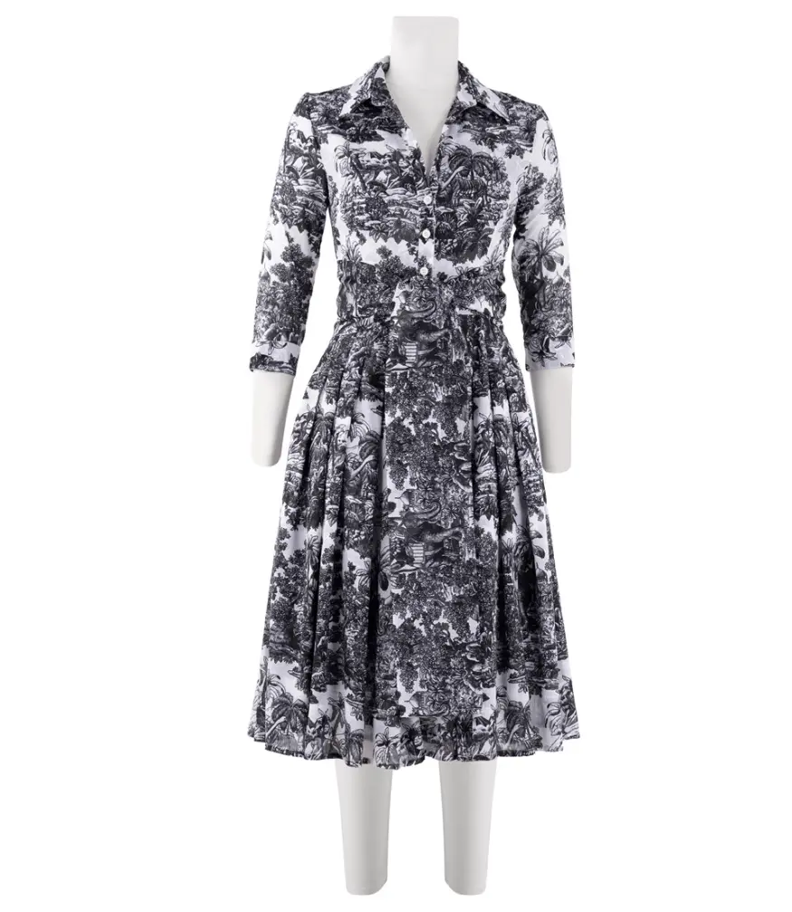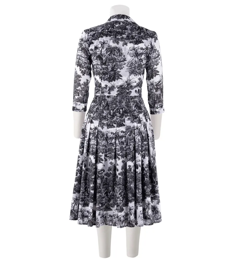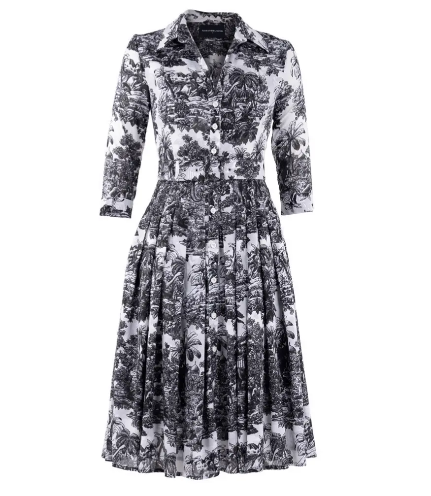 Платье Samantha Sung Audrey #4 с принтом Arabian Toile White/Black - вершина утонченной элегантности. Оно облегающе приталенное и расклешенное, дополнено отложным воротником и удобными рукавами длиной 3/4. Платье выполнено из роскошного дышащего хлопкового мусола и отличается ярким черно-белым принтом, отражающим фирменный художественный вкус дизайнера и его глобальное вдохновение, что делает его универсальным и вневременным изделием, подходящим как для деловых встреч, так и для элегантных светских мероприятий. Дизайнер Саманта Санг - уважаемая фигура в мире моды класса люкс, которая запустила свою одноименную линию в 2006 году, до этого занимая руководящие должности в таких крупных домах моды, как Ralph Lauren и Cerruti, и закрепив репутацию своего бренда за сочетание женственных силуэтов со смелыми, выполненными вручную и уникальными принтами.