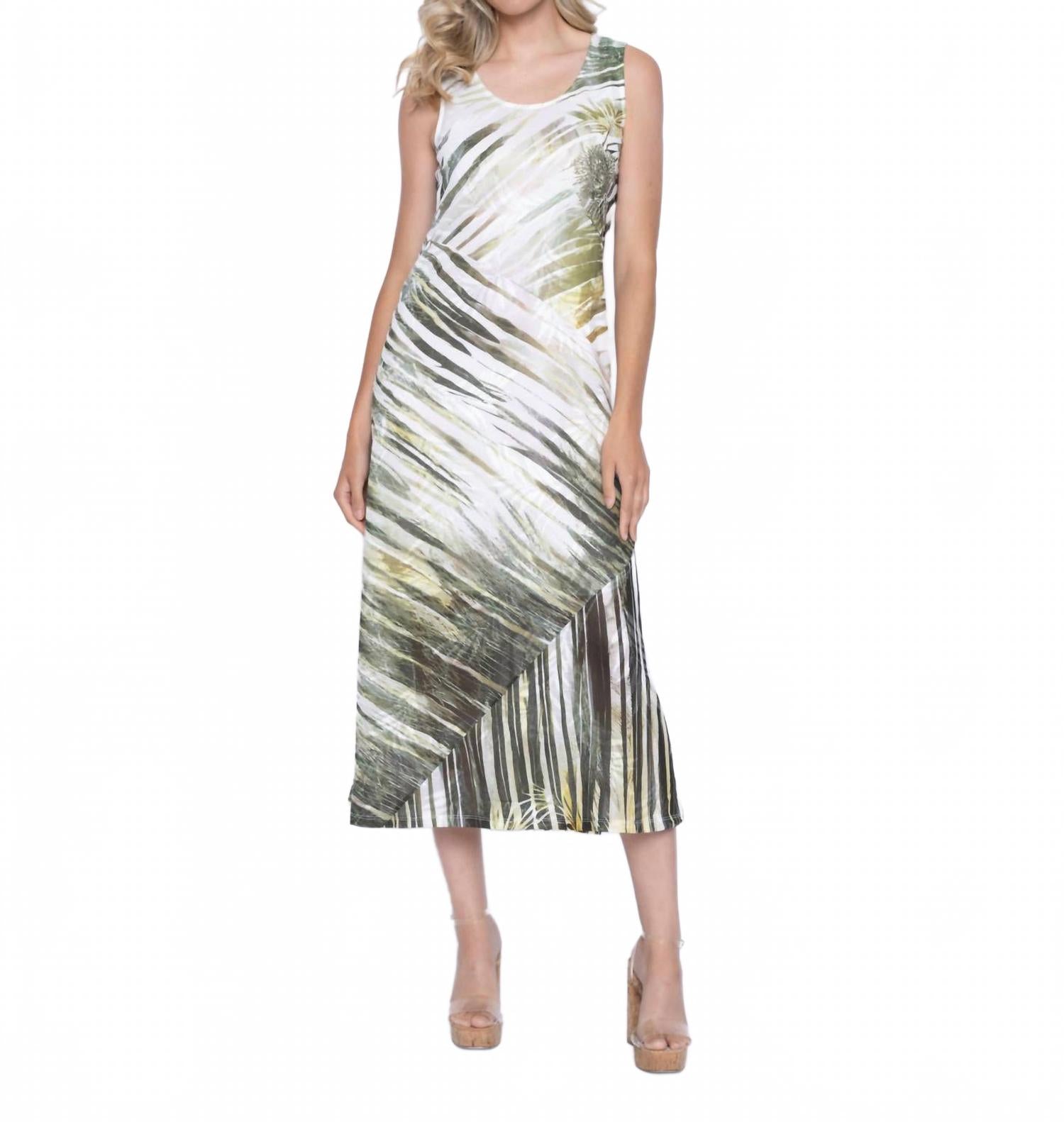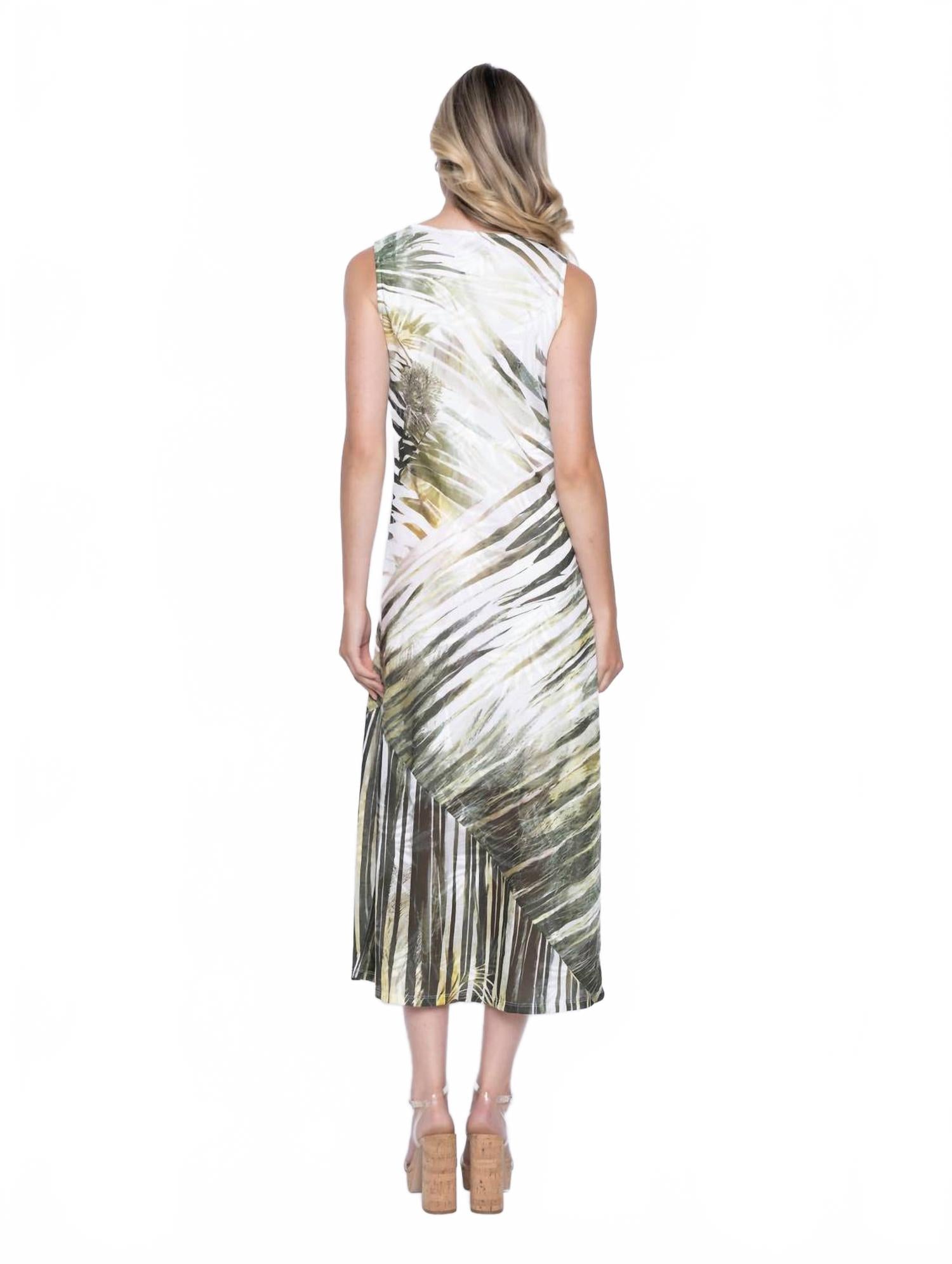 Платье без рукавов с принтом листьев цвета авокадо Picadilly, Avocado Multi
