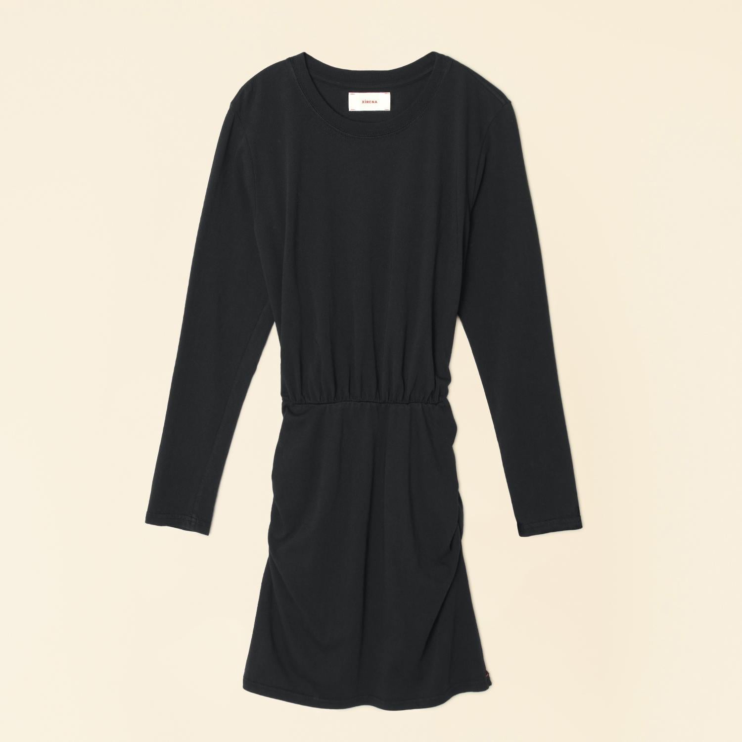Украсьте свой осенний гардероб мини-платьем XIRENA Lula с длинными рукавами - минималистичной вещью, идеально подходящей для званого ужина в честь Дня благодарения. Это однотонное черное платье-футляр из 100% хлопка отличается облегающим силуэтом и выгодно подчеркивает фигуру длиной мини. Длинные рукава, круглый вырез и эластичная талия со сборками делают его одновременно удобным и стильным. Платье, произведенное в Лос-Анджелесе, легко поддается машинной стирке в холодной воде на щадящем режиме и сушке в стиральной машине при низкой температуре. Платье оснащено удобной застежкой-липучкой.
