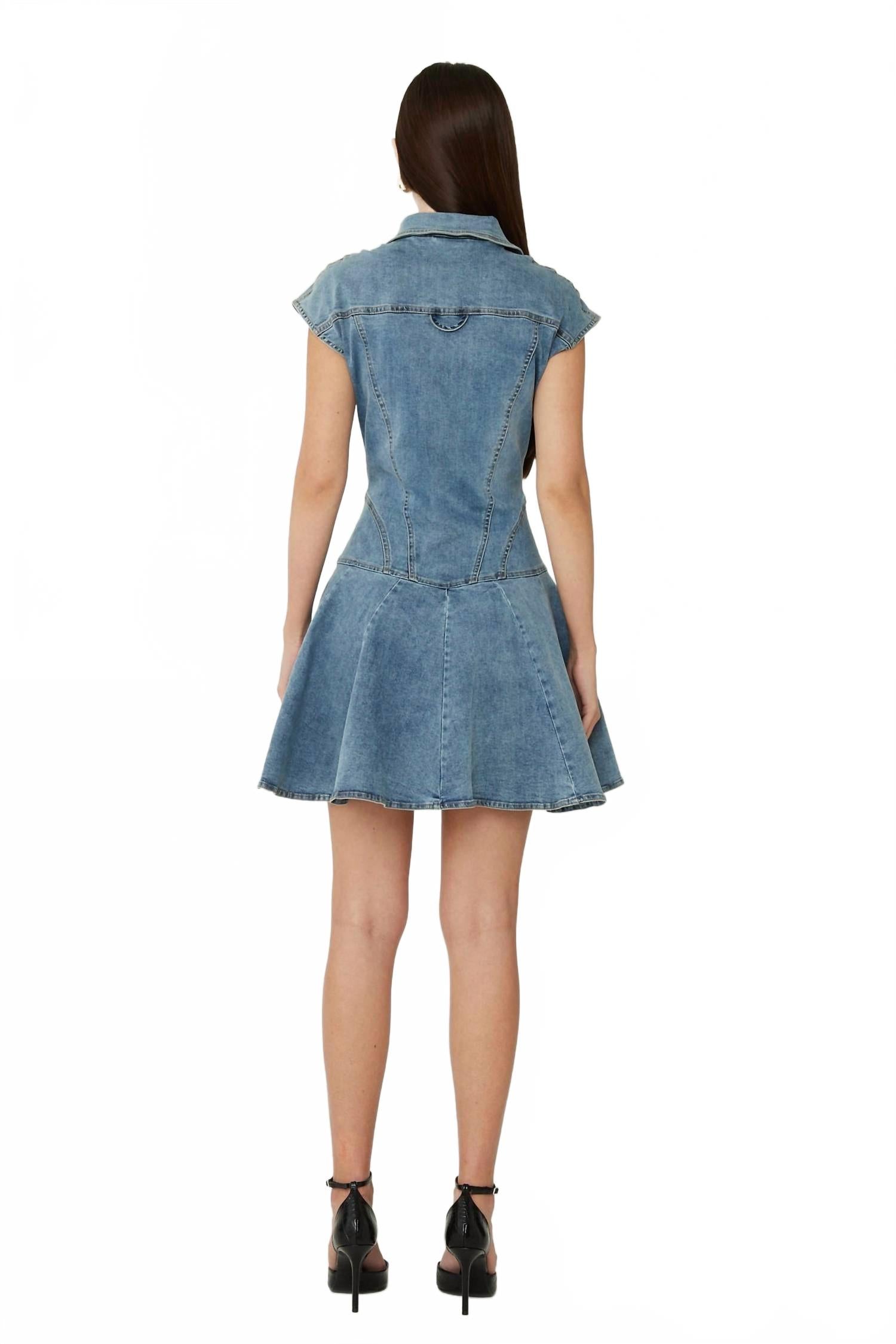 Представляем платье Tina от JS71 - потрясающее платье облегающего силуэта с расклешенной юбкой из комфортной хлопковой ткани с добавлением эластичной ткани. Платье средней степени стирки украшено элегантной золотой фурнитурой и практичной застежкой на пуговицы спереди. Рукава-крылышки и длина от плеча до подола 88 см делают его идеальным вариантом для перехода от повседневного к изысканному образу с помощью простой замены аксессуаров. Уход: сухая чистка. Рост модели: 175 см, обхват груди: 88 см, обхват талии: 66 см, обхват бедер: 88 см. На модели размер S.