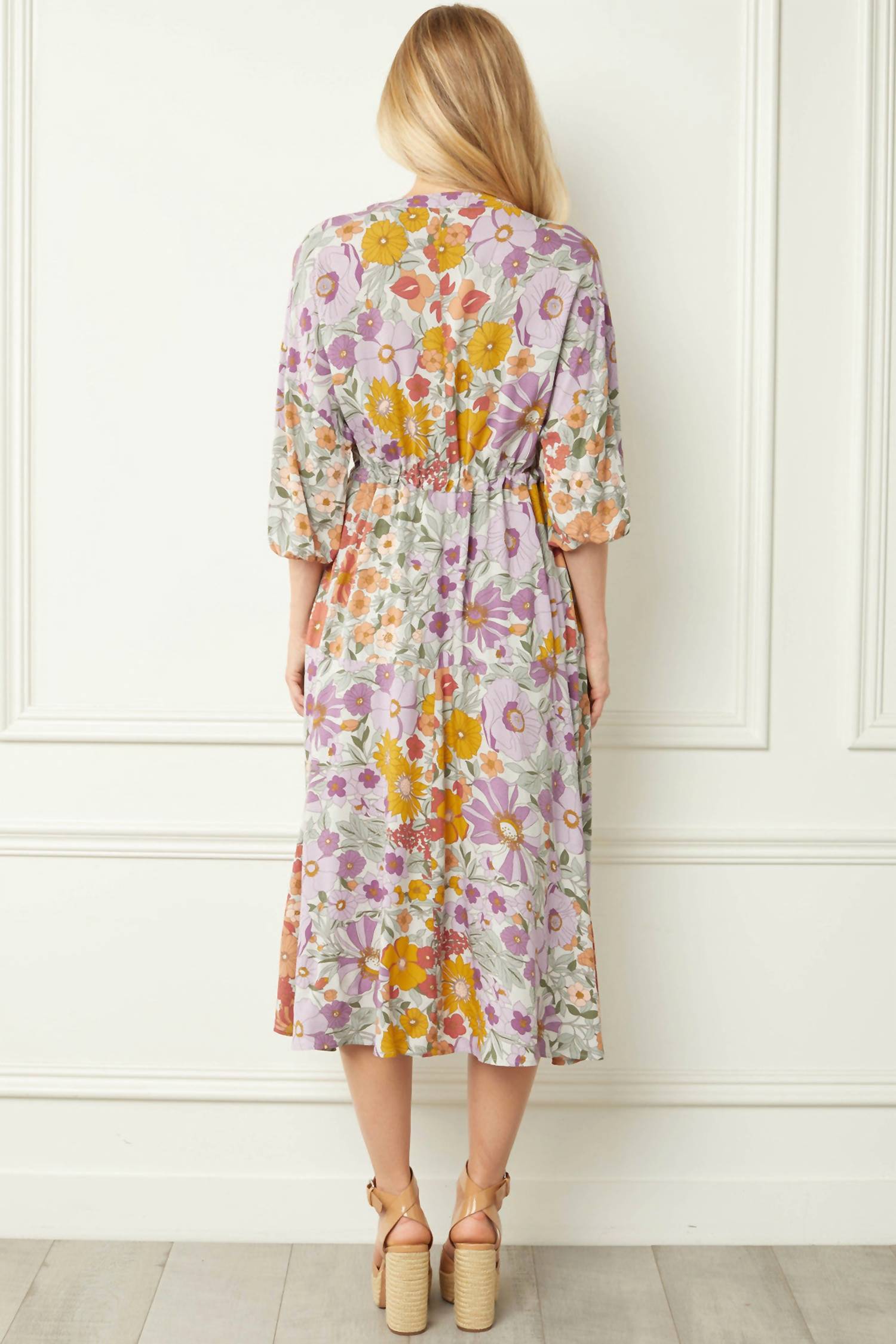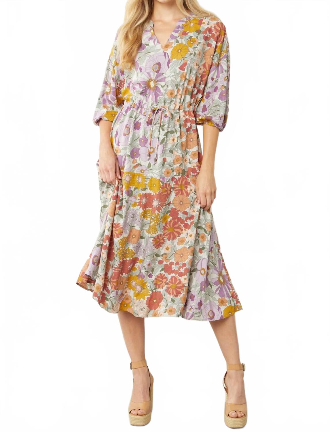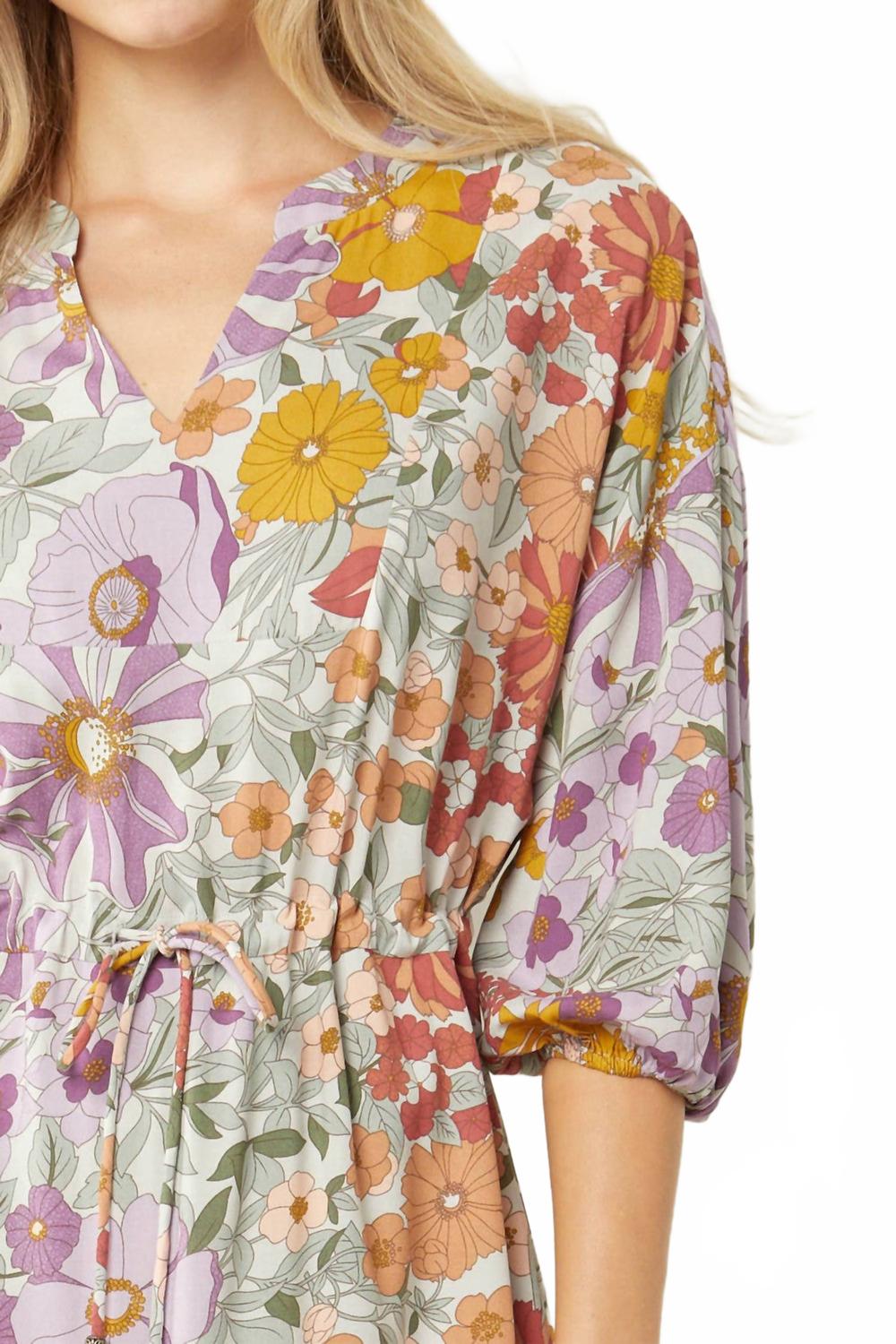 Просто добавьте шлепанцы или мюли, и все готово. Ощутите стиль бохо-шик в винтажном платье-миди с цветочным принтом от Entro, которое станет прекрасным дополнением к любой праздничной вечеринке. Платье с ярким разноцветным цветочным узором имеет привлекательный V-образный вырез и рукава три четверти с эластичными манжетами. Платье изготовлено из легкого 100% вискозы, его можно стирать вручную или сдавать в химчистку. Застежка-липучка обеспечивает комфорт. Размеры: обхват груди 111 см (маленькая), длина 111 см (48 дюймов), обхват груди 111 см (средняя), длина 111 см (46 дюймов), обхват груди 111 см (большая), длина 111 см (48 дюймов).
