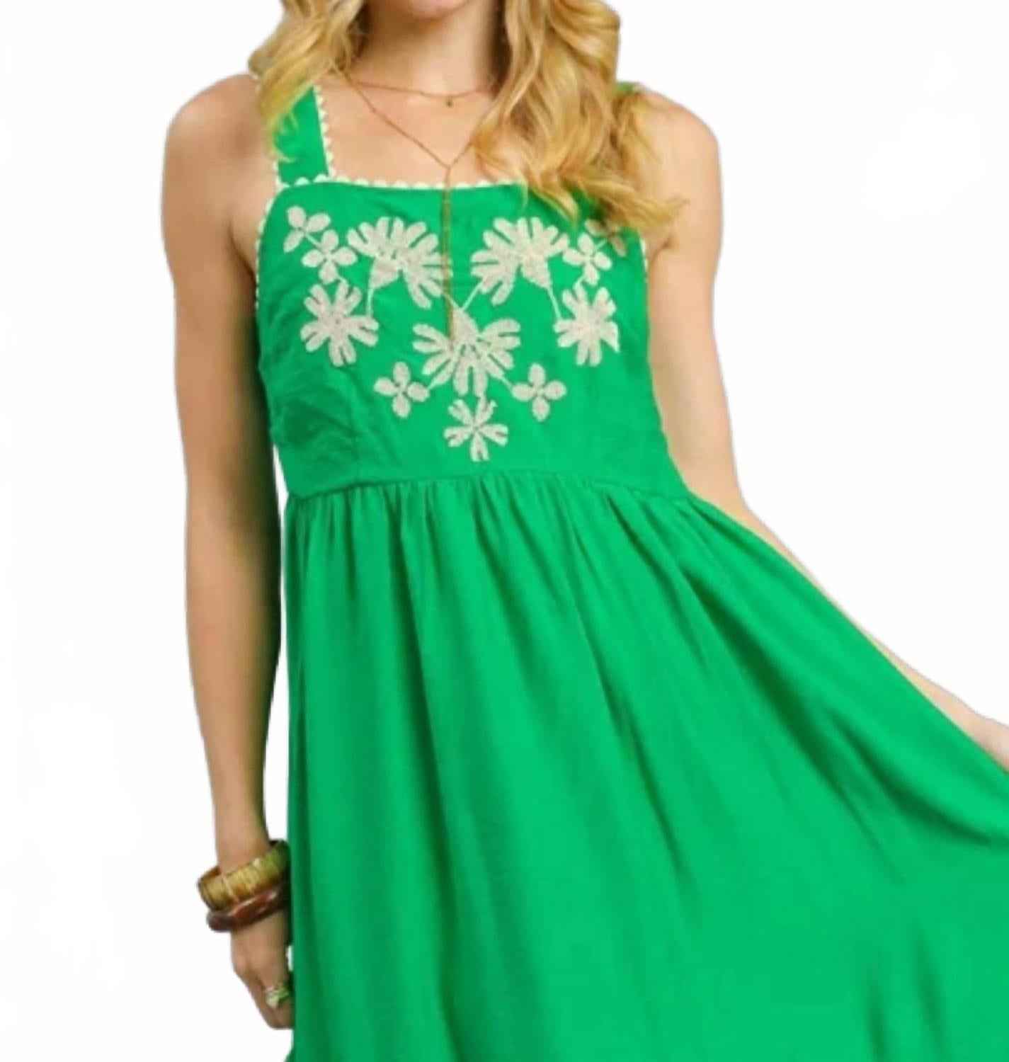 Платье «Откройте для себя яркое будущее» от Umgee - эффектное летнее изделие насыщенного зеленого цвета «Келли», идеально подходящее для любого выхода в свет в День святого Валентина. Это платье без рукавов с цветочной вышивкой на лифе, квадратным вырезом с вышитыми бретелями и многоуровневым асимметричным миди-низом создает очаровательный А-образный силуэт. Платье изготовлено из нейлоновой смеси (82% вискозы и 18% нейлона), что является воплощением максималистского очарования и непринужденного стиля. Застежка - натяжная. Рекомендации по уходу: ручная стирка и сушка на веревке.