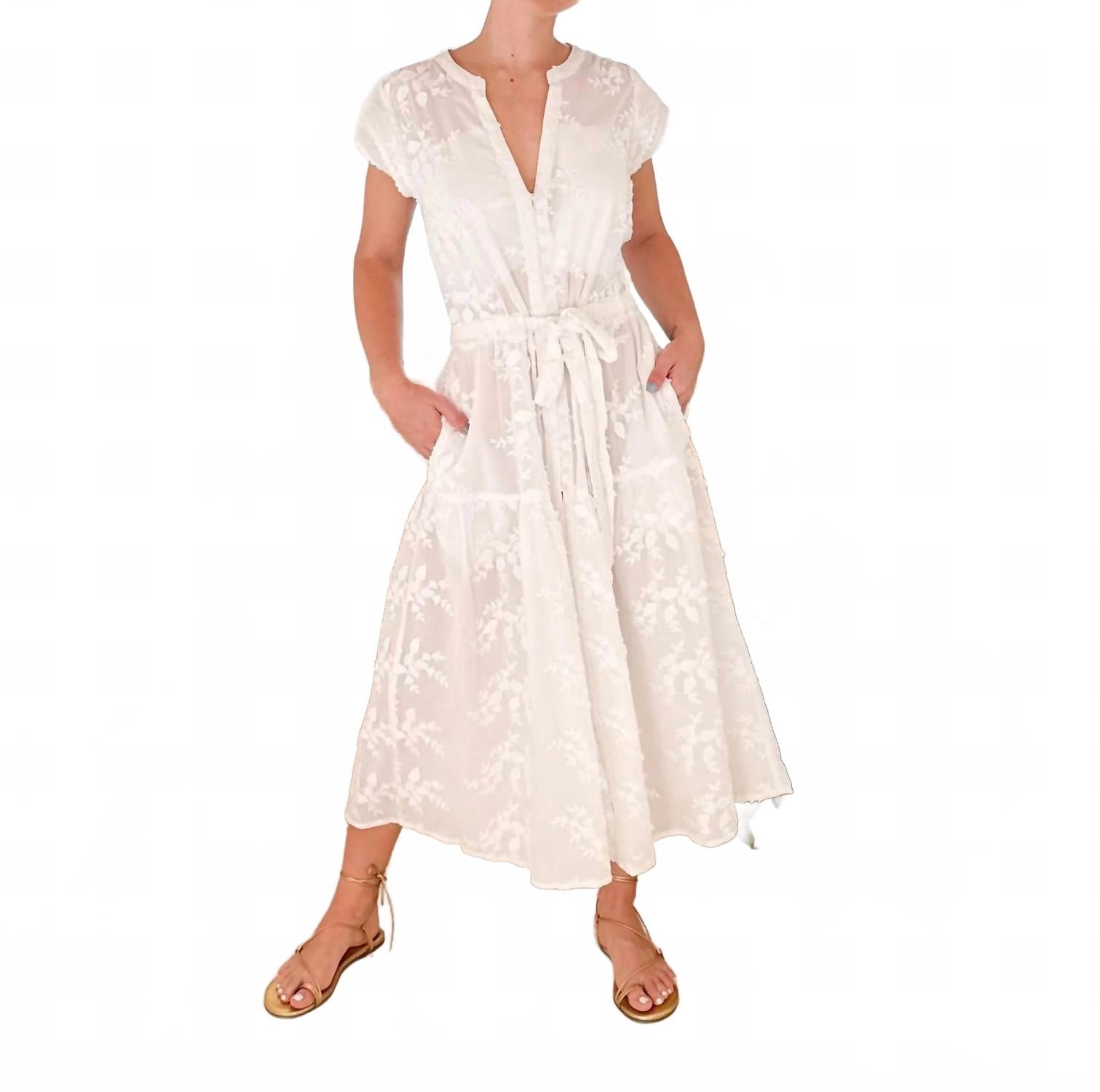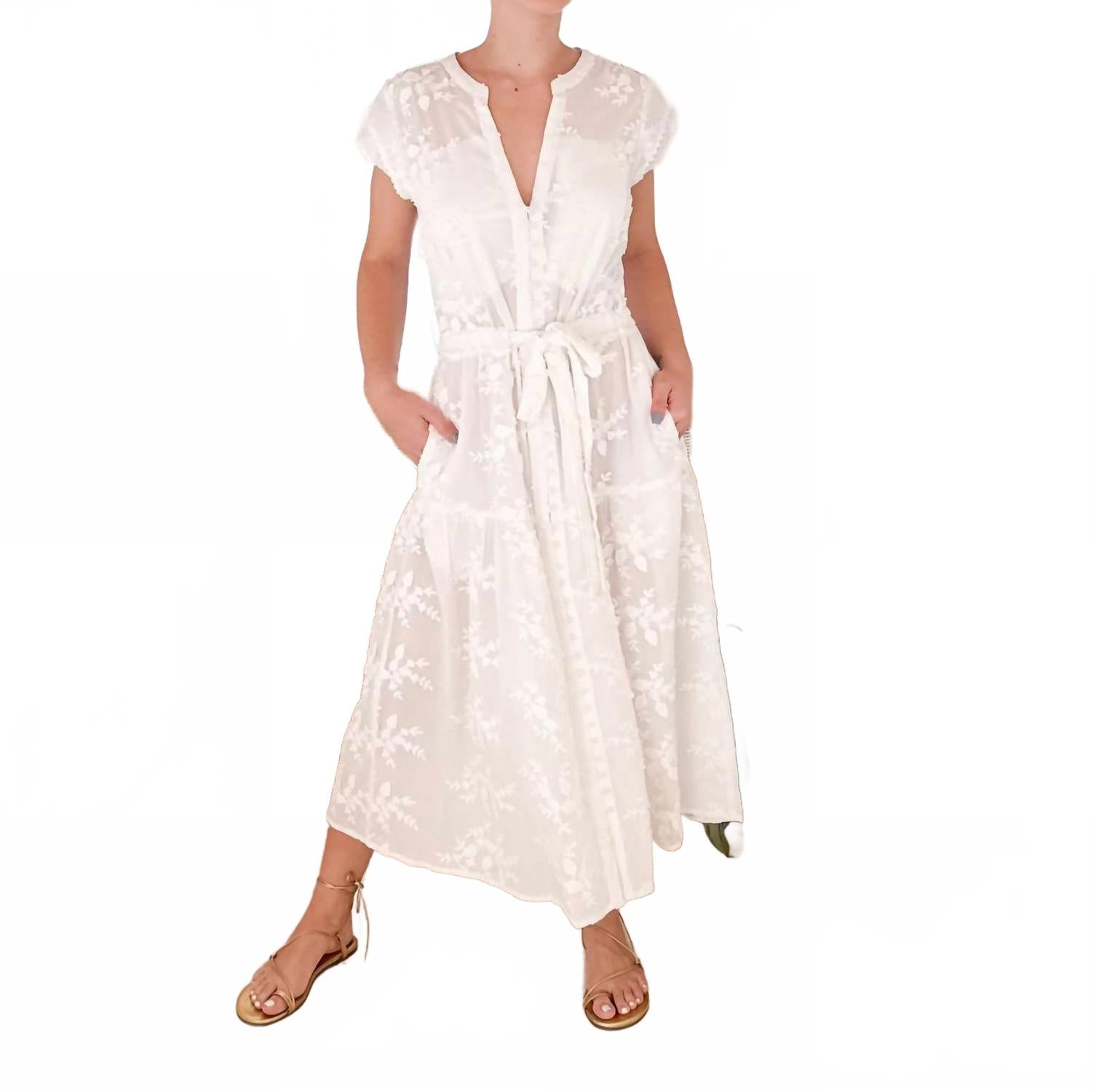Платье миди настолько универсально, что ваши варианты его ношения безграничны. Проникнитесь духом женственности в платье миди Daisy Boo от LOLA AUSTRALIA, изысканном образце в восточно-белом цвете. Это платье с короткими рукавами, тщательно сшитое из 100% хлопка, украшено фактурным узором, который подчеркивает его очарование в стиле бохо-шик. А-силуэт с изящной застежкой на пуговицы выгодно подчеркивает любую фигуру, делая его идеальным выбором как для летнего отдыха, так и для вечеринок в саду. Это платье с удобными карманами и романтичным V-образным вырезом обещает элегантность и комфорт, неподвластные времени.