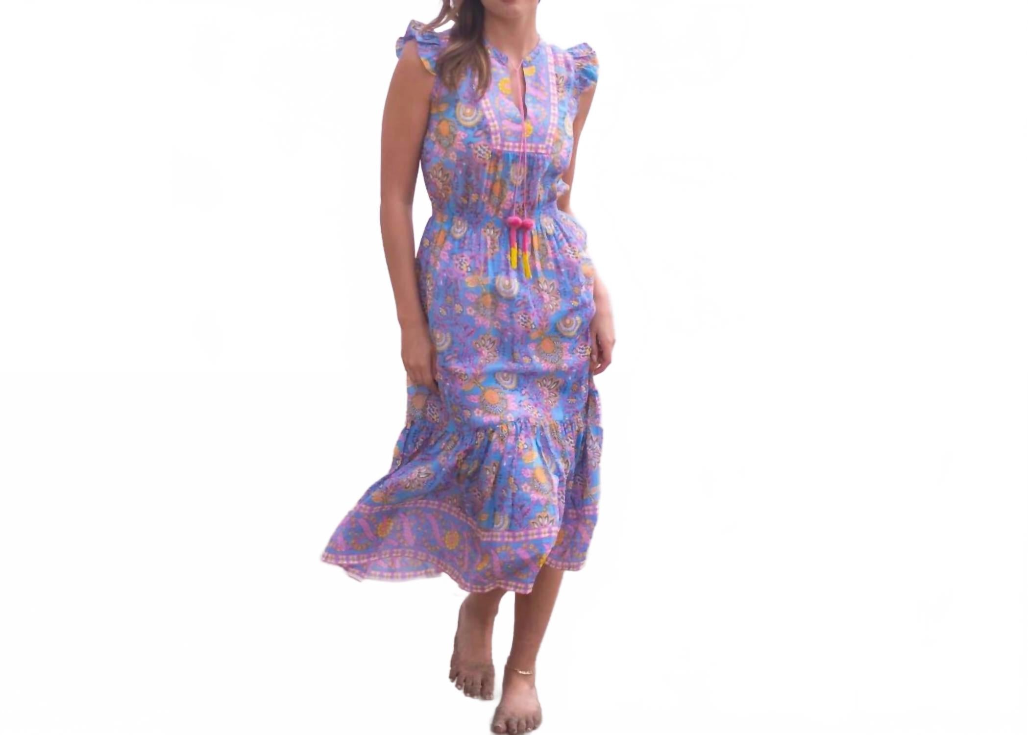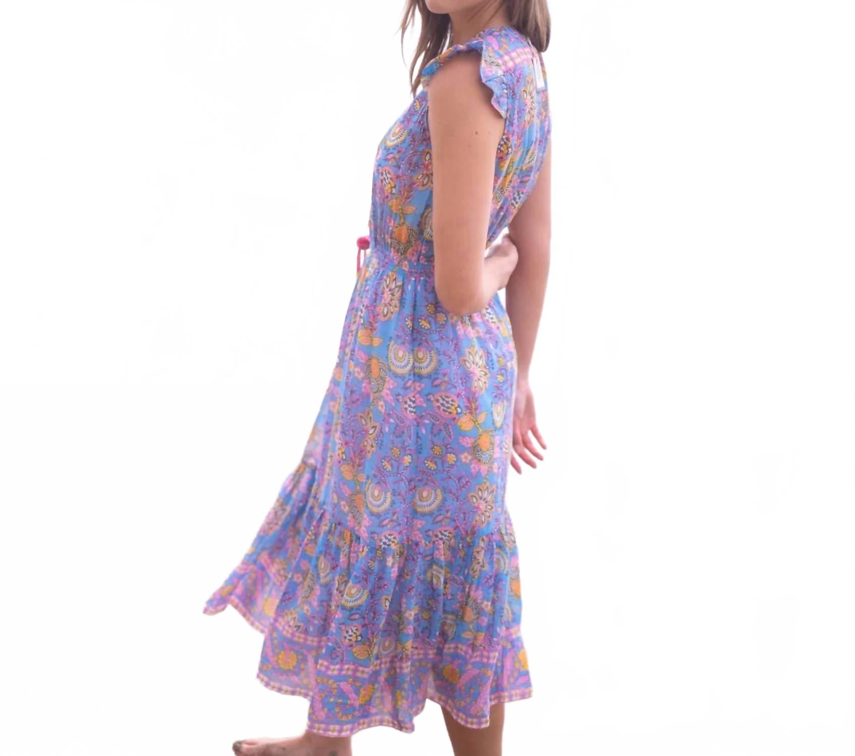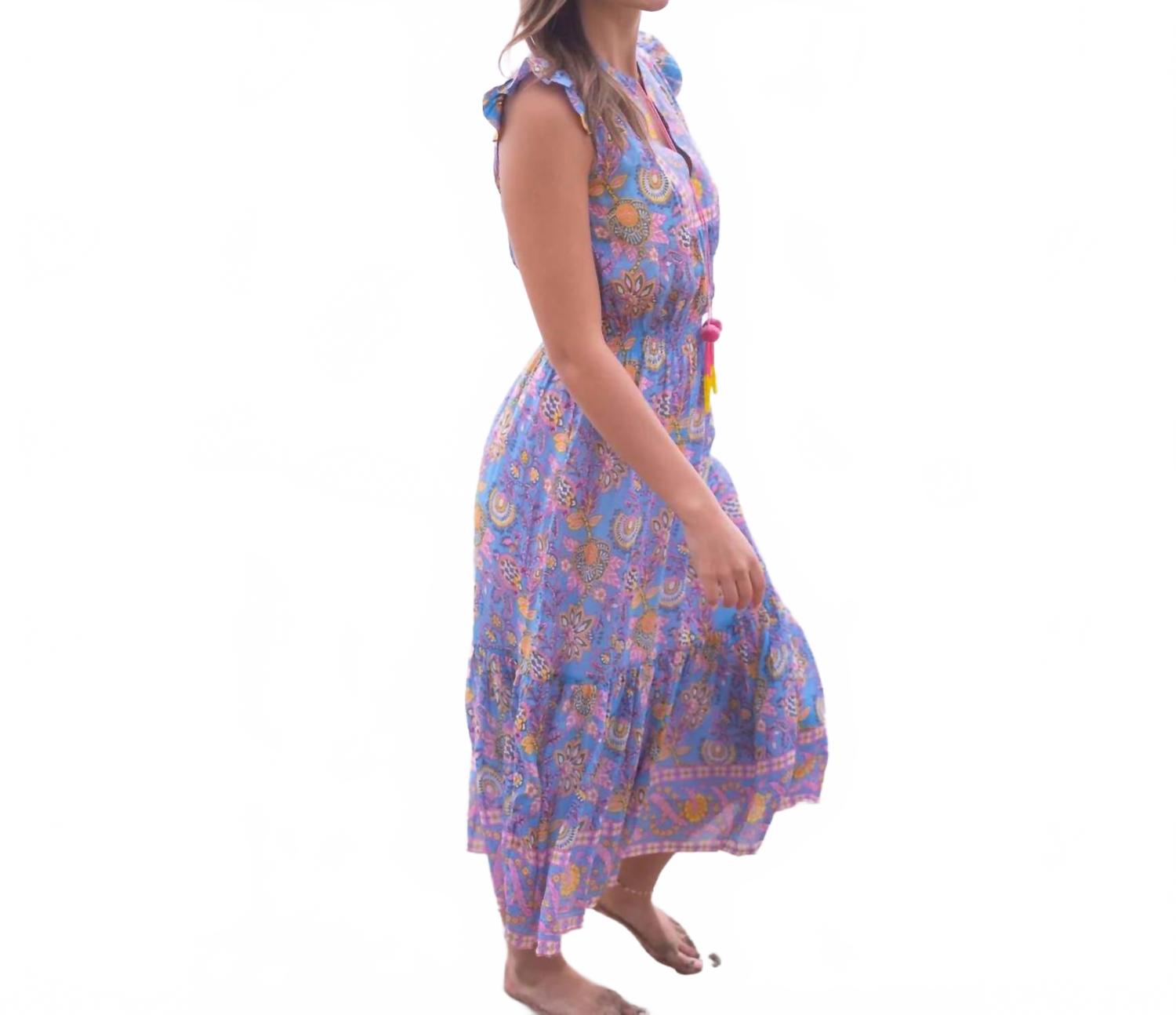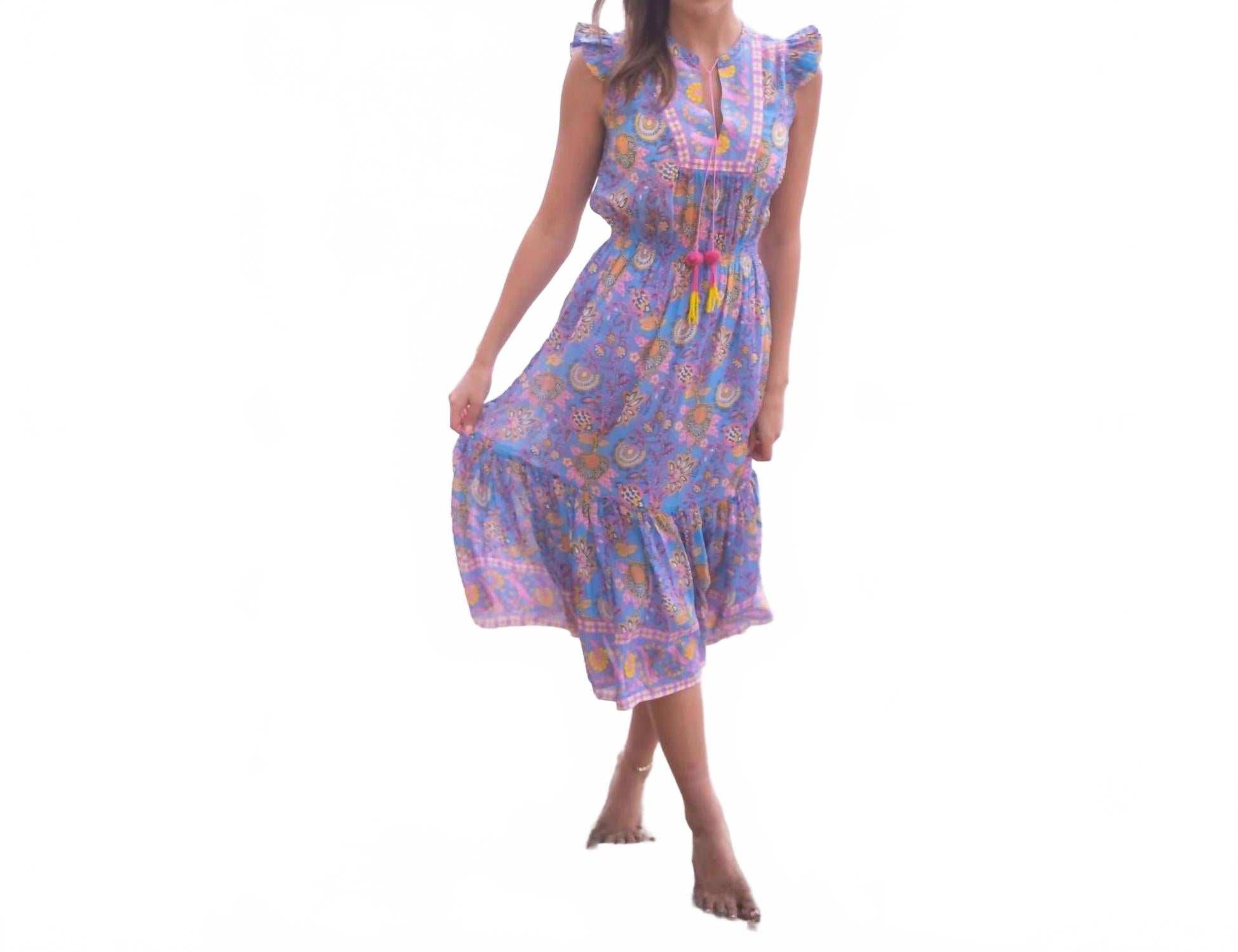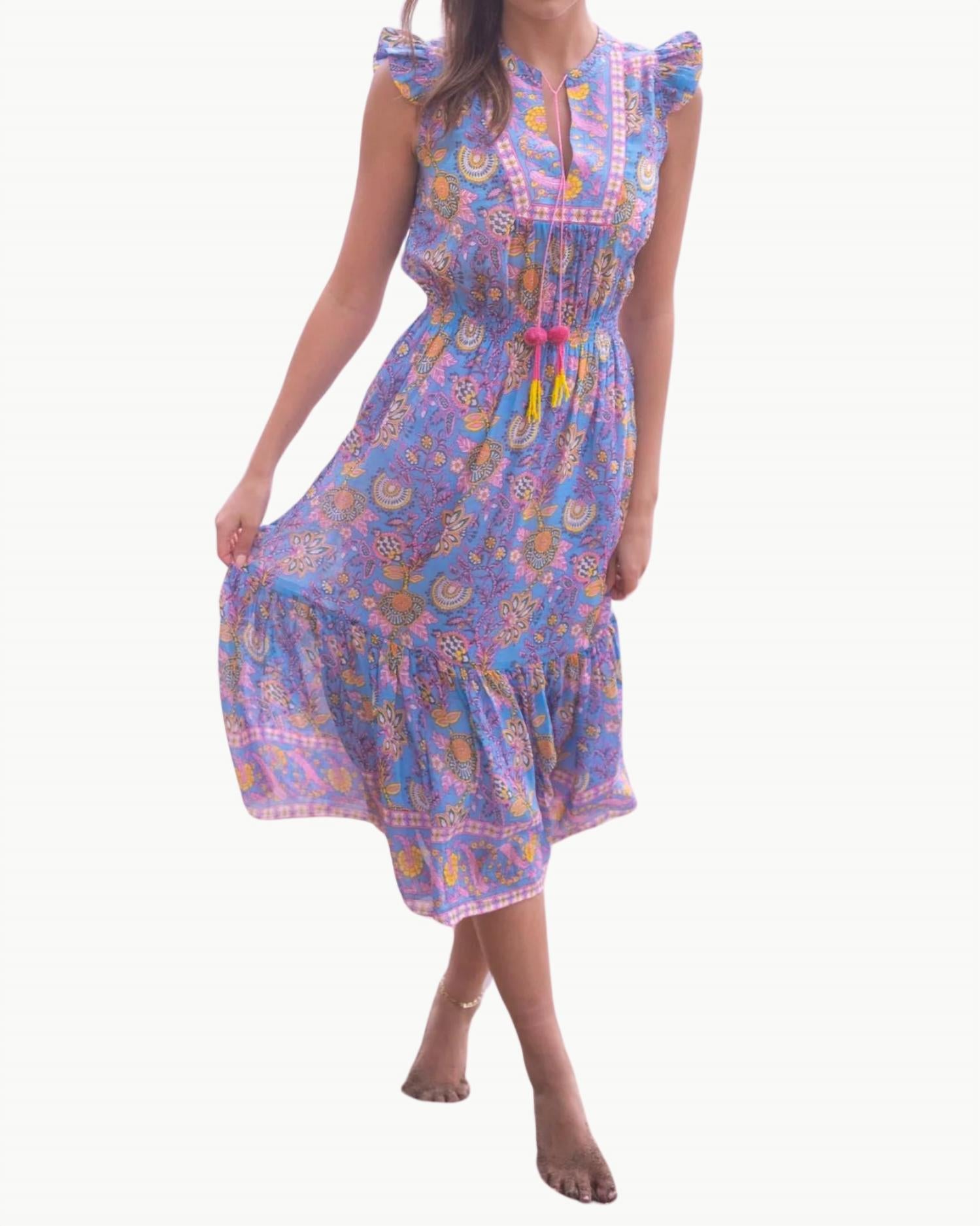 Наполните свой летний гардероб легкой женственностью с помощью платья Lola Midi от BELL с очаровательным сине-желтым принтом. Это платье с рукавами-крылышками сочетает в себе ручной работы цветочный узор, изящную длину миди и свободный силуэт колокольчика, обеспечивая легкость и легкость. Платье выполнено из шелково-хлопковой вуали, обеспечивает легкость и воздухопроницаемость, дополненные изящными оборками и кисточками ручной работы. Застежка на завязку. Идеально подходит для образа в стиле бохо-шик для отпуска.