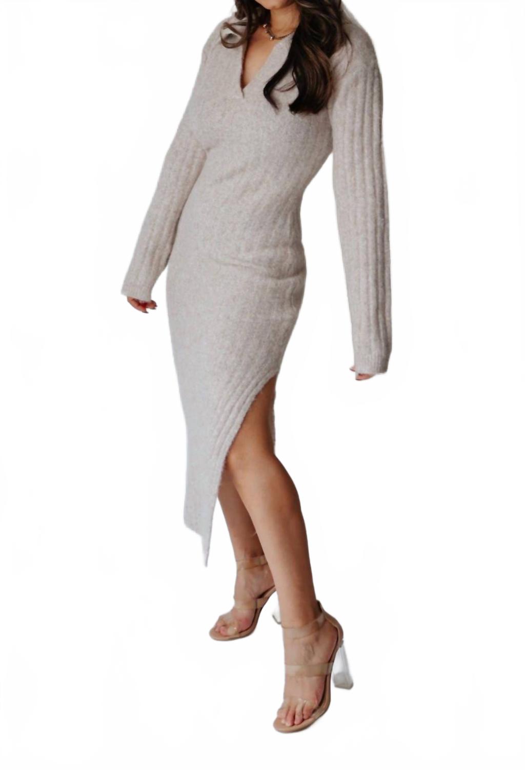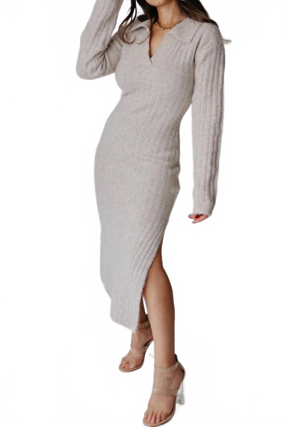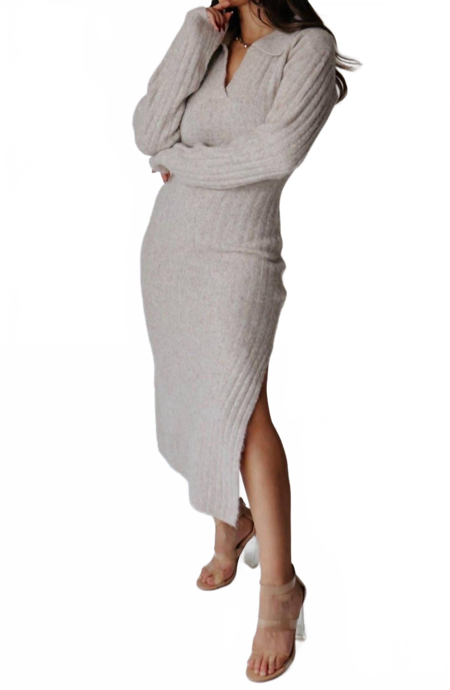 Уютное платье-свитер миди бежевого цвета Klesis, бежевый