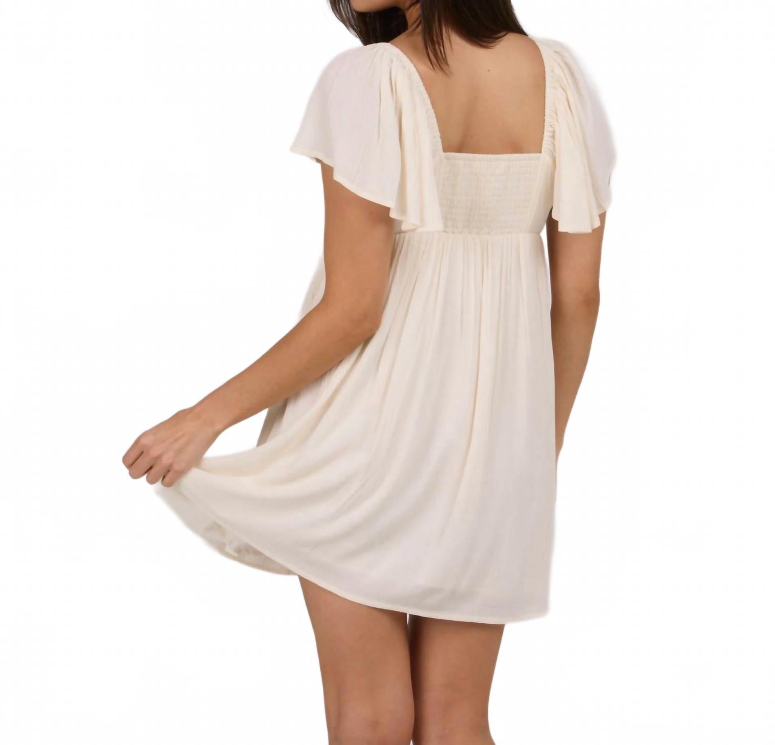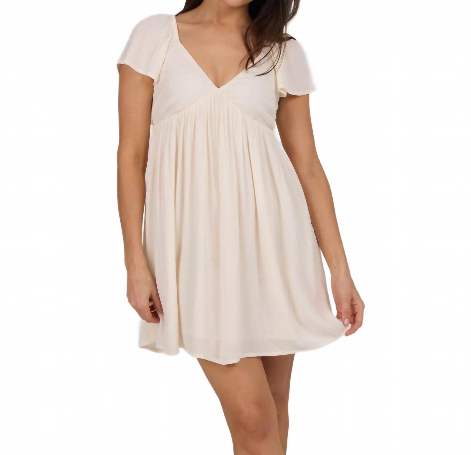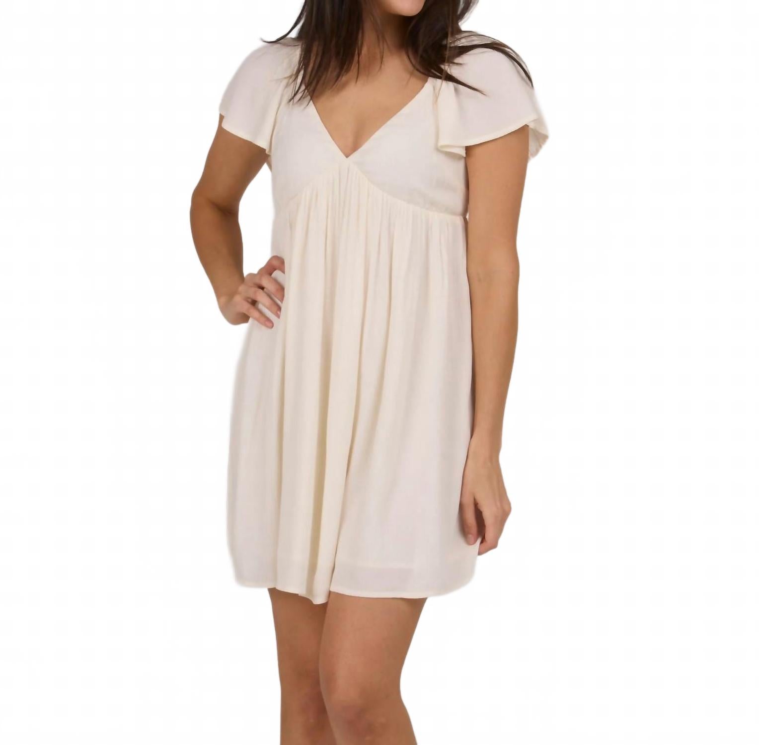 Комфортное и элегантное платье, которое вы будете носить круглый год. Откройте для себя платье Mainland Dress от Salty Crew - восхитительный выбор в нежно-белом цвете, излучающий очарование. Это мини-платье длиной 88 см с короткими рукавами-крылышками выполнено из 100% жатой вискозы, что обеспечивает легкость и воздушность. Завышенная талия и V-образный вырез дополняют игривый пышный подол, а боковая молния и сборка на спине обеспечивают удобную посадку. Это однотонное платье идеально подходит для создания кокетливого и модного образа, обеспечивая непринужденную повседневную носку.