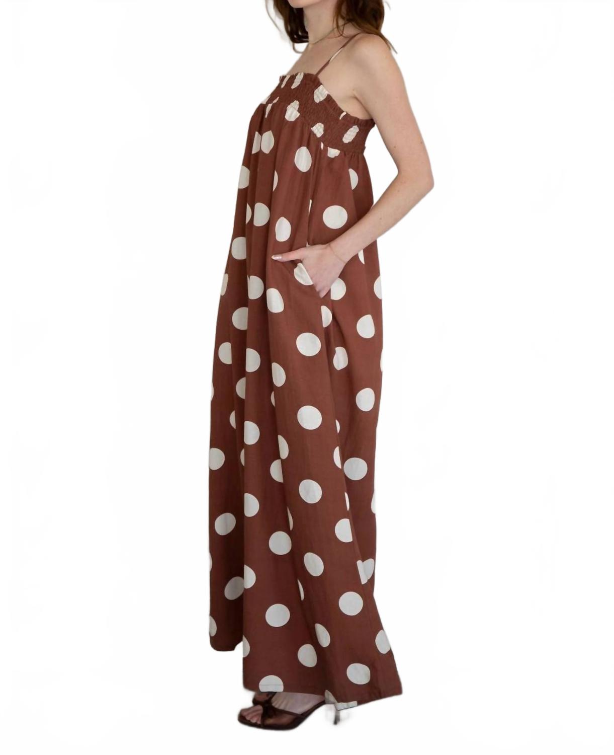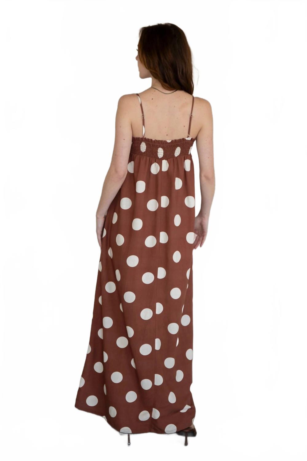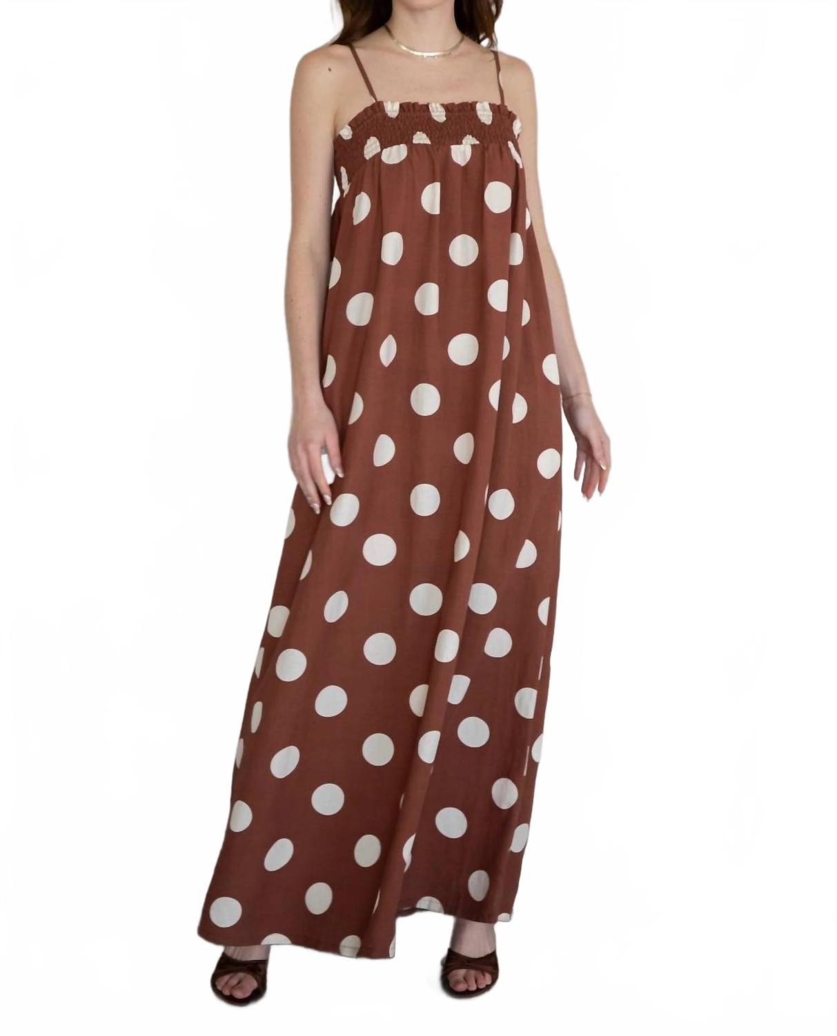 Коричневое платье макси в горошек Things Between, коричневый