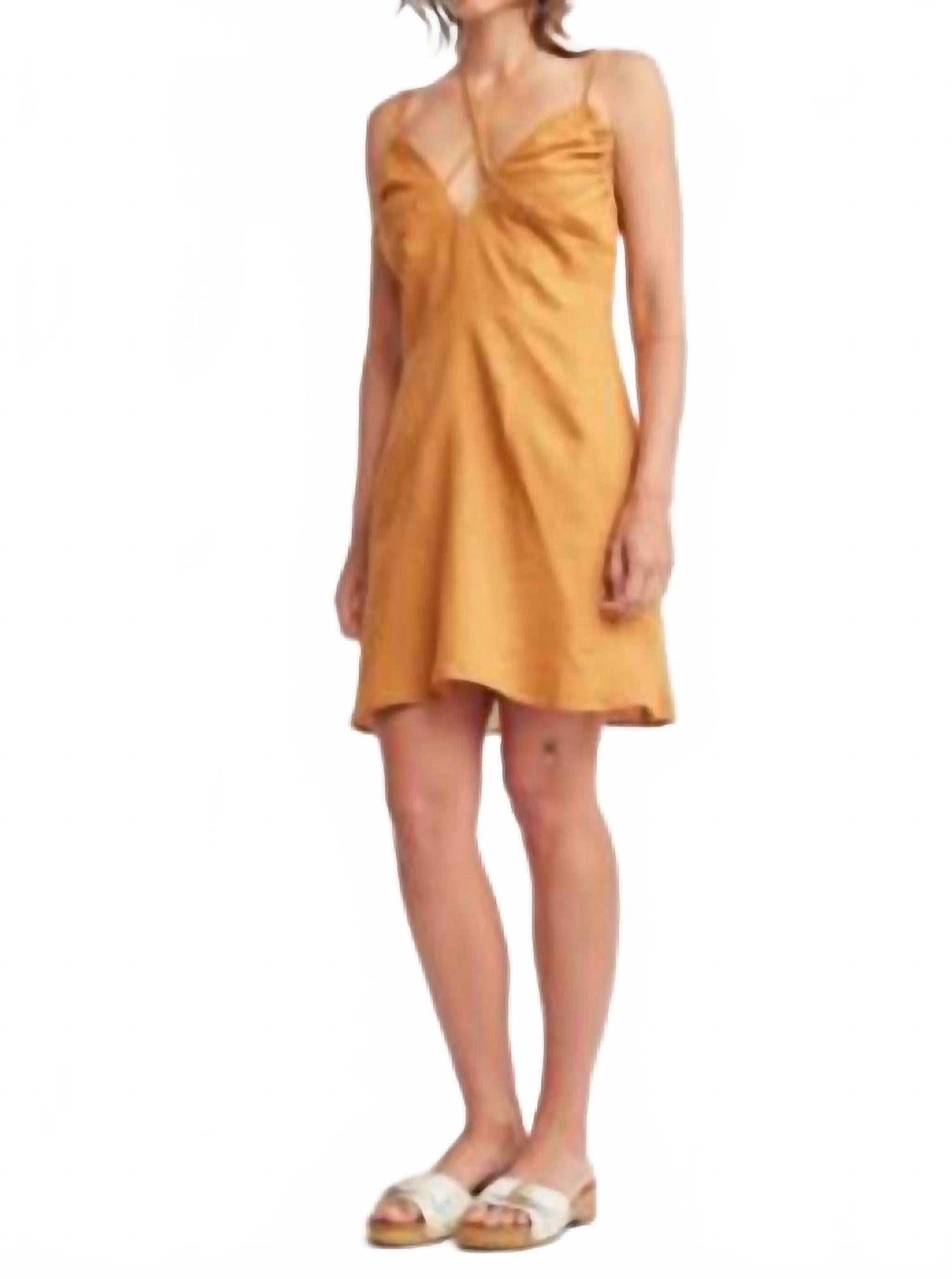 Короткое и воздушное платье для теплых дней. Платье Anais Adjustable Straps Mini Dress от Self Contrast станет вашим идеальным спутником для солнечных приключений. Платье выполнено на тонких бретельках из дышащей смеси 55% льна и 45% хлопка, что обеспечивает свободную длину мини. Глубокий V-образный вырез и декоративный шов под грудью идеально подчеркивают женственность силуэта. Застежка: завязка. Уход: можно стирать в стиральной машине. Благодаря насыщенному кленовому цвету оно станет универсальным выбором для любого весеннего мероприятия или для поклонников моды 90-х.