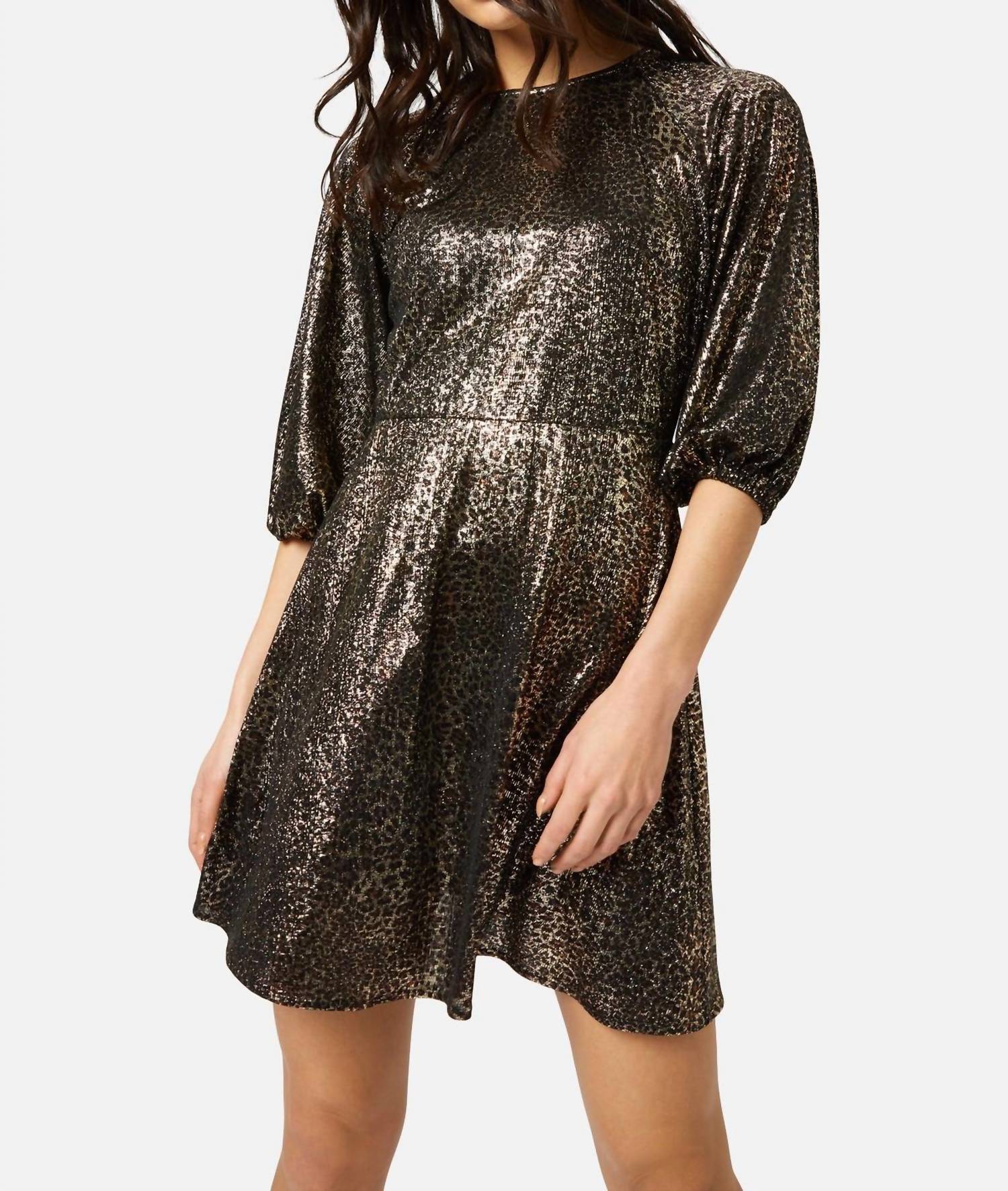 Представляем мини-платье Banish от Traffic People - эффектное изделие с металлизированным леопардовым принтом, которое ослепит любого наряда. Это мини-платье с рукавами-фонариками три четверти с эластичными манжетами и облегающим силуэтом, который мерцает при каждом движении. Платье изготовлено из 65% нейлона и 35% металлизированной ткани. Оно имеет стильный вырез-капельку на спине и удобную застежку-молнию. Для оптимального сохранения цвета рекомендуется только ручная стирка.