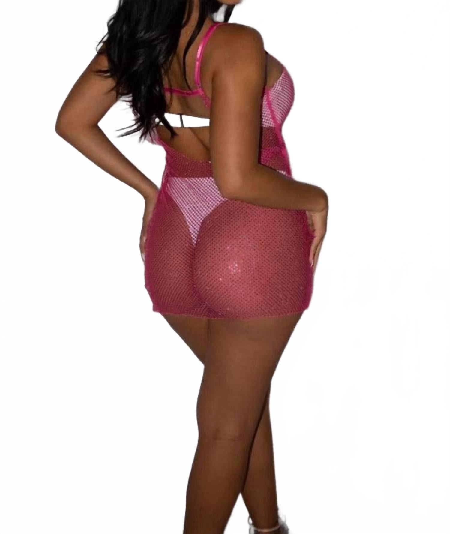 Идеальное мини-платье для теплых месяцев. Дополните свой летний гардероб мини-платьем Kayla Rhinestone Mesh от TIC TOC, которое блистательно смотрится на любой вечеринке у бассейна. Это розовое облегающее платье с тонкими бретельками и смелой открытой спиной с бретелькой сзади создает кокетливый и соблазнительный силуэт. Платье мини-длины из эластичной сетчатой ​​ткани, состоящей из 93% полиэстера и 7% спандекса, полностью расшито стразами для максимального эффекта. Наслаждайтесь комфортом регулируемых бретелей и глубоким овальным вырезом, выходя на улицу стильно.