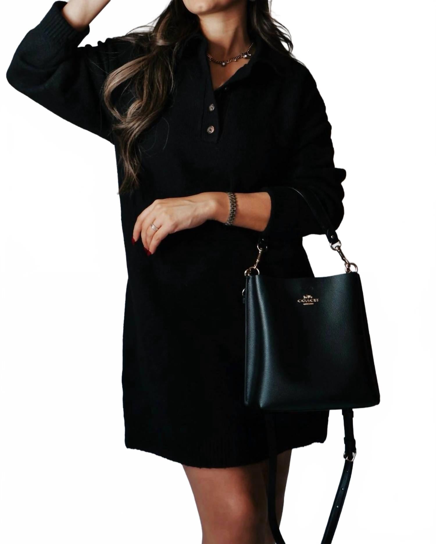 Свободное и элегантное платье, которое вы будете носить круглый год. Встречайте минималистичное платье-свитер Blu Pepper - незаменимая вещь в вашем весеннем гардеробе. Это женское мини-платье однотонного черного цвета с длинными рукавами и характерным воротником в сочетании со свободным рубашечным силуэтом. Застежка на пуговицы добавляет функциональности и модного штриха, а длина 34 дюйма делает его универсальным для путешествий и повседневных дел. Платье легко стирать в стиральной машине, чтобы сохранить его первоначальный вид. Рост модели - 165 см, размер S.