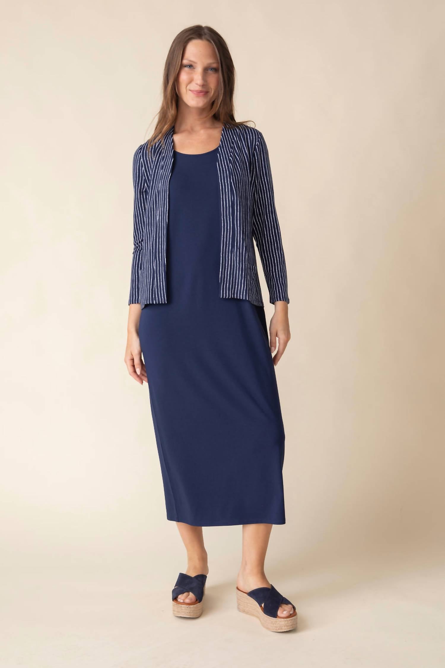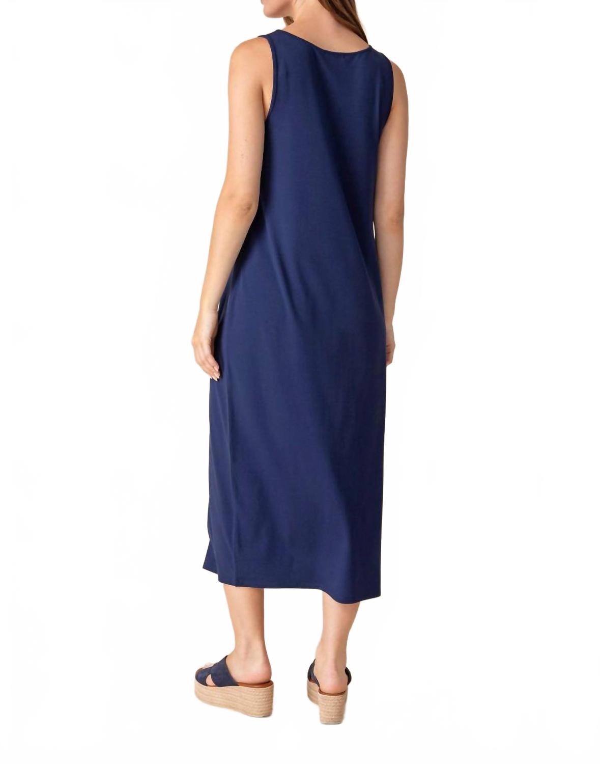 Платье идеальной длины существует. Представляем платье-миди Core Travel Knit Everything от Habitat - незаменимую вещь для создания универсального летнего образа. Это платье-трапеция без рукавов, выполненное в однотонном темно-синем цвете, имеет глубокий вырез горловины, создающий минималистичный образ. Платье выполнено из мягкого и легкого вискозного шелка, обеспечивающего максимальный комфорт. Застежка: легко надевать. Уход прост: машинная стирка и сушка в стиральной машине - идеально для праздничных нарядов, например, на День благодарения.