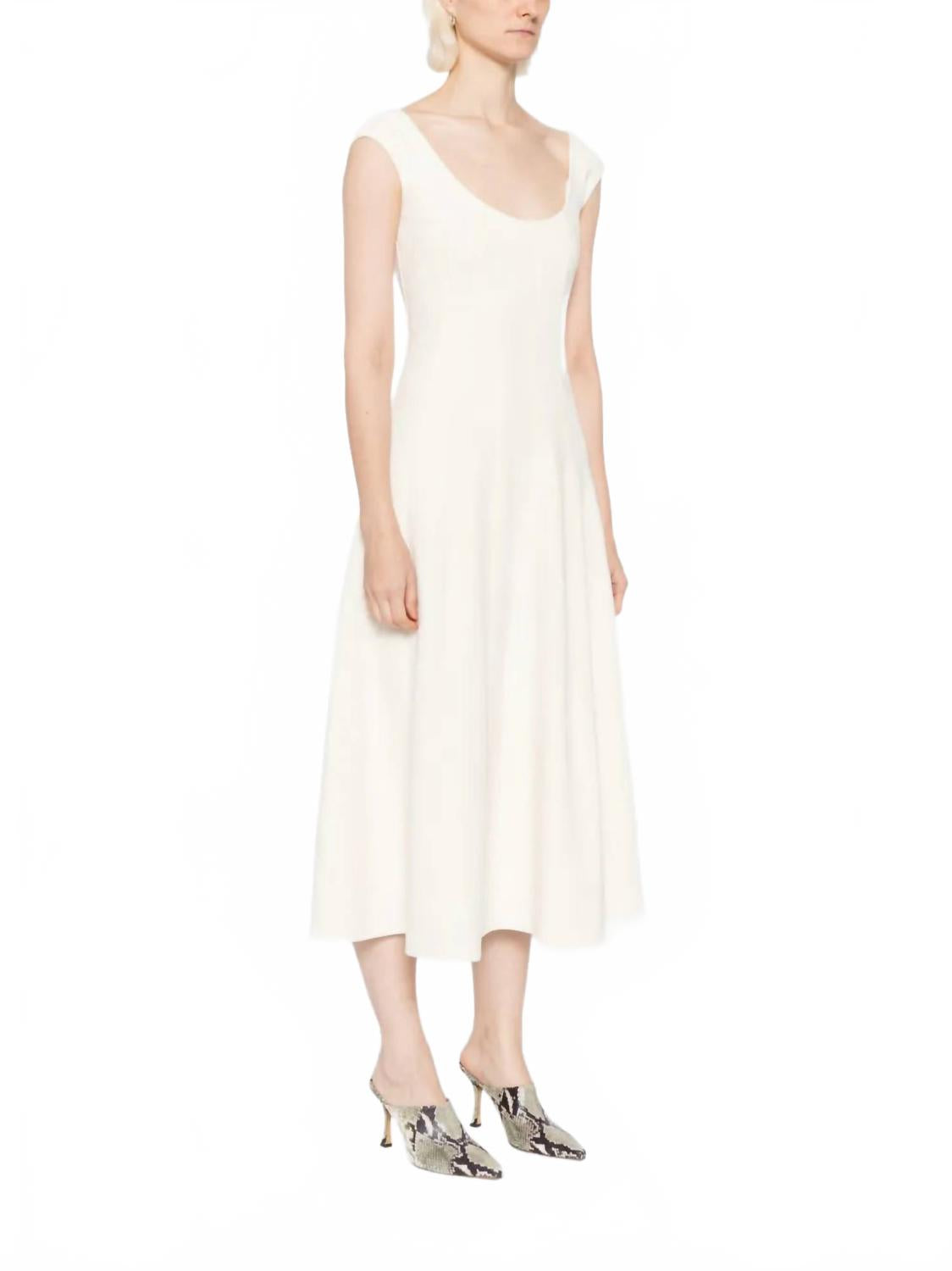 Просто добавьте шлепанцы или мюли, и все готово. Откройте для себя платье миди STAUD Charlotte изысканного цвета экрю, которое идеально впишется в любой гардероб. Это платье А-силуэта без рукавов с эффектным круглым вырезом и корсетными швами, подчеркивающими его элегантный силуэт. Искусно изготовленное из смеси 68% полиэстера, 27% вискозы и 5% эластана, с подкладкой из 97% полиэстера и 3% эластана, оно обеспечивает комфорт и стиль. Застежка: надевайте. Уход: ручная стирка и сушка на веревке. Импортируется из-за исключительного качества.