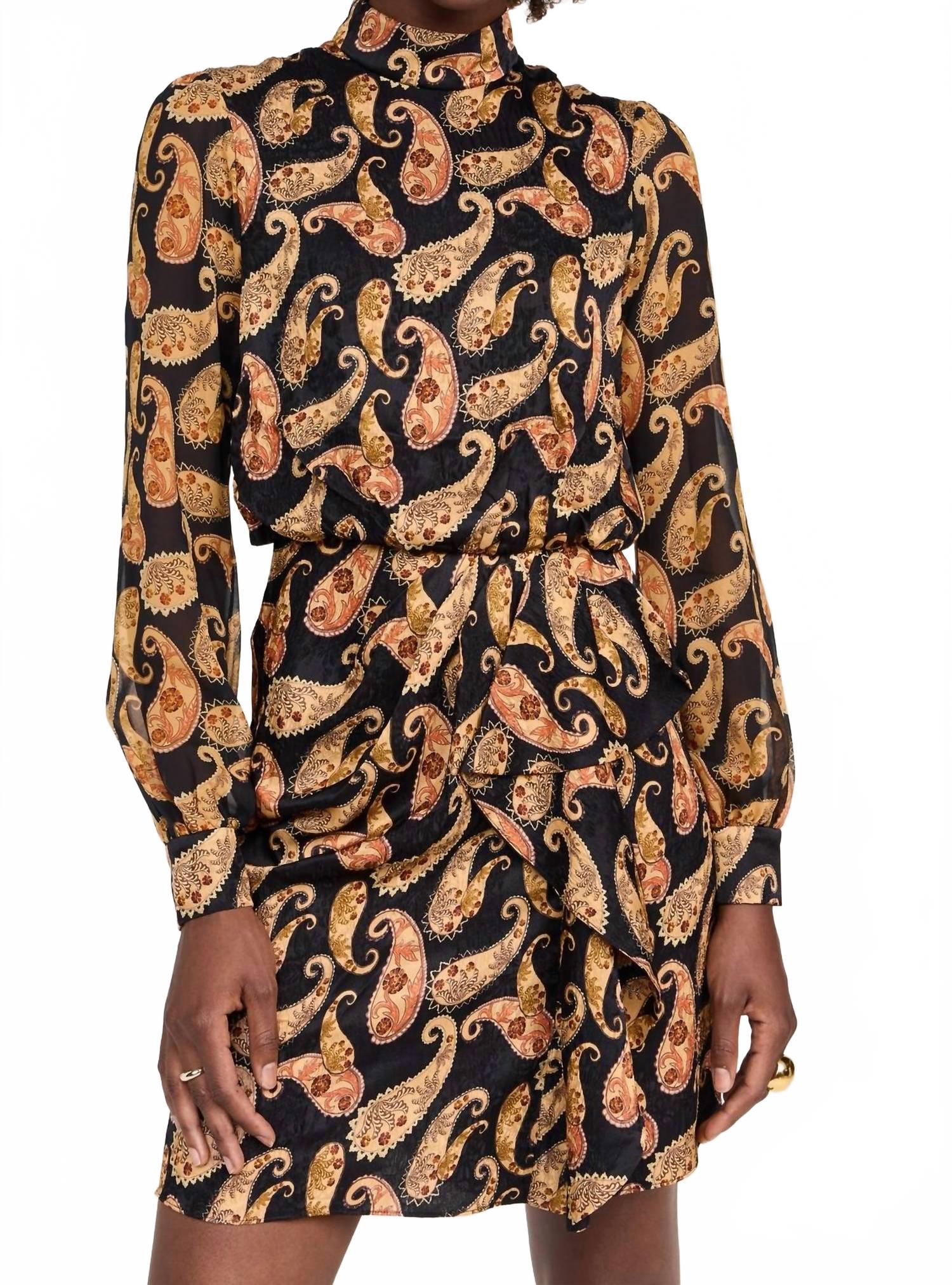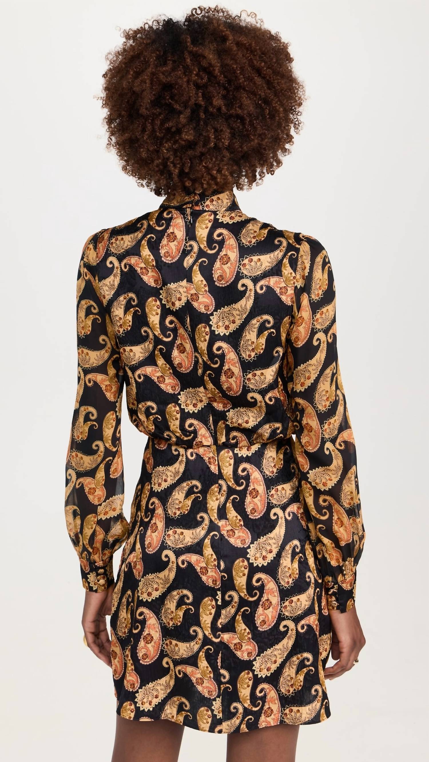 Раскройте свой внутренний мир бохо-шика в коротком платье Draped Isa от SALONI - идеальном выборе для вашего следующего вечернего мероприятия. Это мини-платье А-силуэта из роскошной смеси 70% вискозы, 25% шелка и 5% спандекса украшено ярким узором пейсли Ixora Cashew. Платье имеет длинные рукава, стильный воротник-стойку и удобную застежку-молнию. Длина платья составляет 88 см, оно создано для весеннего сезона. Рекомендуется сдавать в химчистку.