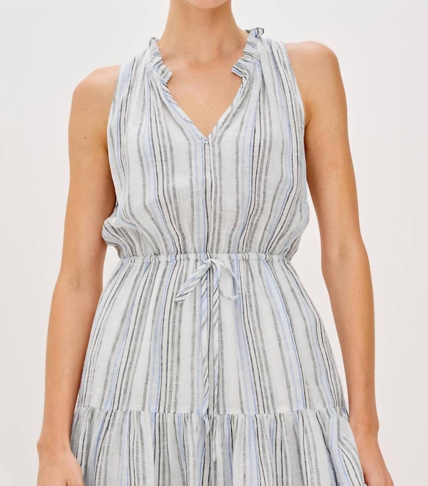 Легкое и элегантное платье, которое вы будете носить круглый год. Мини-платье Albany от Rails - незаменимый предмет гардероба этой весной, идеально подходящий как для пасхальных встреч, так и для неформальных мероприятий. Это платье А-силуэта без рукавов в полоску Antibes Stripe выполнено из смеси 55% льна и 45% эковеро с минималистичным полосатым узором. Регулируемая талия на шнурке и воротник с оборкой добавляют женственности, дополняясь многоярусной юбкой. Застежка: надевается вручную. Уход: ручная стирка и сушка на веревке.