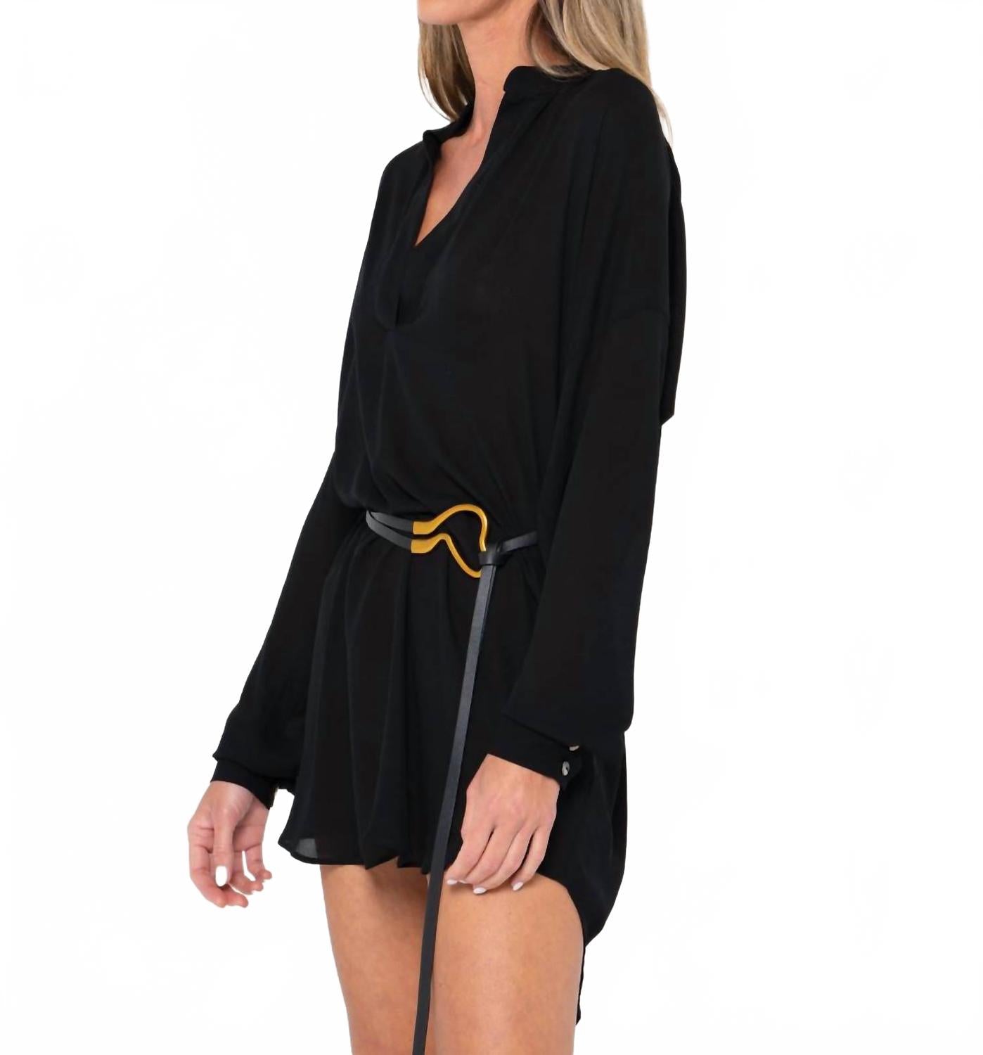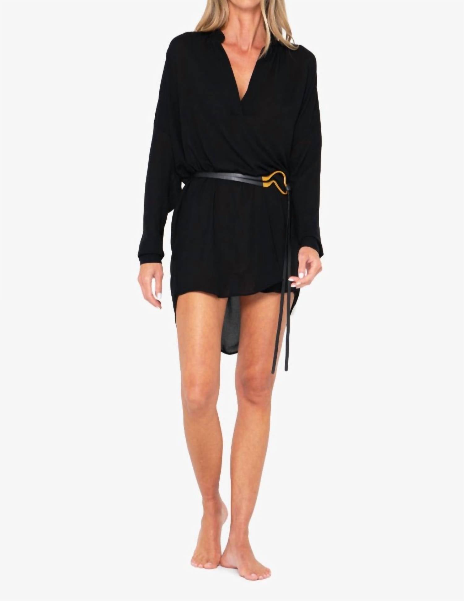 Короткое и воздушное платье для теплых дней. Дополните свой отпускной гардероб модным мини-платьем Jensen Dress от JBQ, идеально подходящим для весенних прогулок. Это однотонное черное платье выполнено из 100% полиэстера и имеет силуэт с запахом, эффектный V-образный вырез, спущенную линию плеча и длинные рукава с манжетами на пуговицах. Платье надевается через голову, а асимметричный подол выше колена создает дополнительный шик. За ним легко ухаживать: достаточно стирать в холодной воде на деликатном режиме.